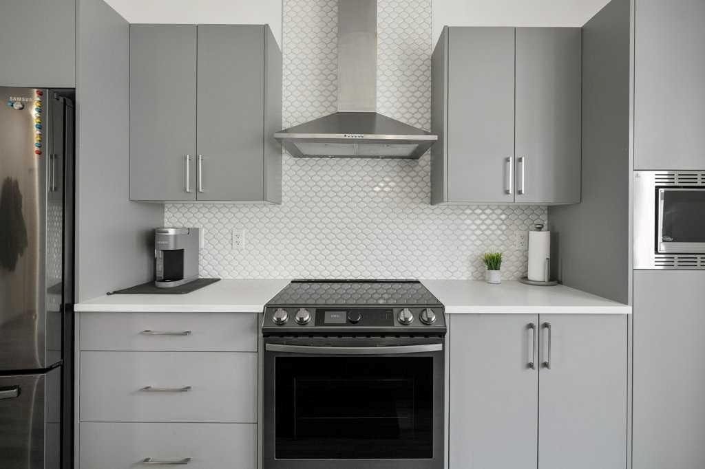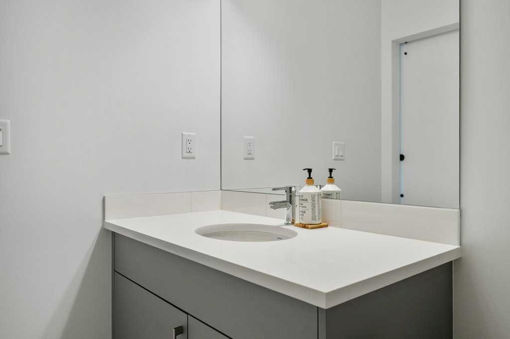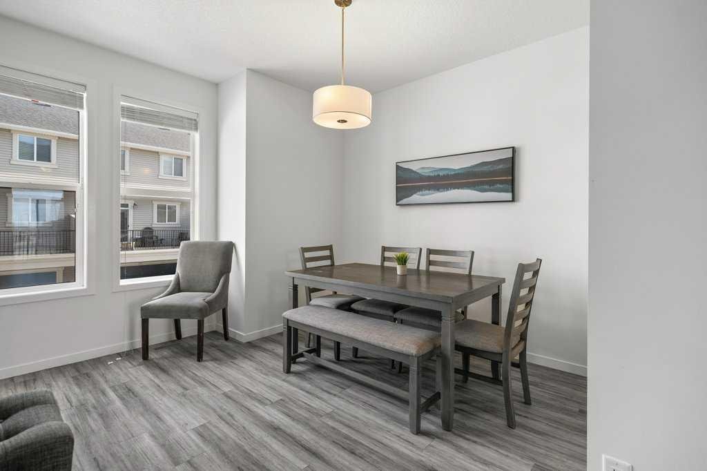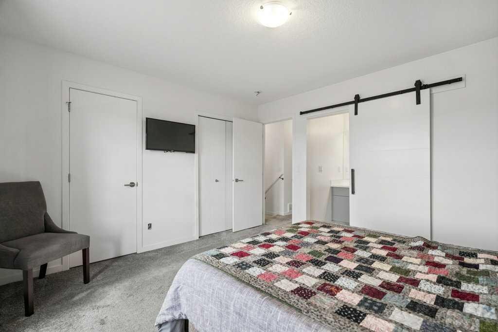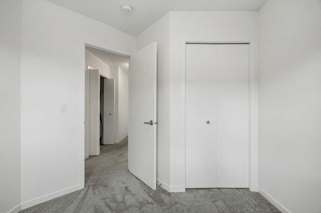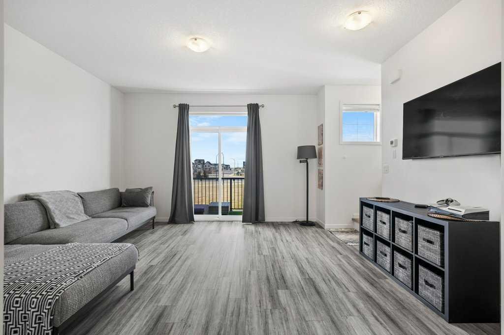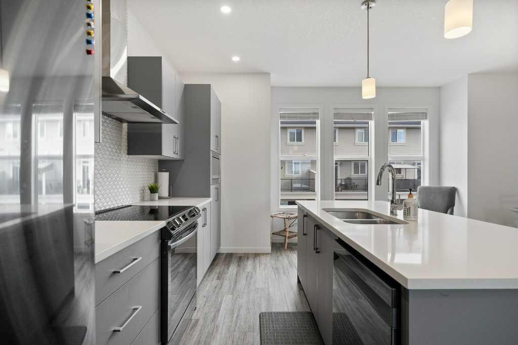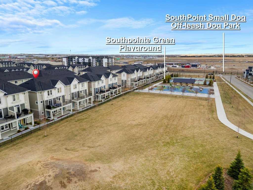 Don’t miss this one! Double wide attached garage and backing south to a beautiful green space/park. Welcome to South Point Lane. This modern 3-bedroom end unit townhome has a lot to offer. It starts with the main level flex space that could be utilized as a home office, gym, or whatever you decide. The main living area is highlighted by the modern and bright open floor plan. Stylish vinyl plank floor stretches through this level. The sleek gourmet’s kitchen is complete with quartz countertops, large island, ample amounts of cabinets, pantry, modern stainless-steel appliance, plus a beautiful tile backsplash. Adjacent dining nook will accommodate a large table. The spacious open living room is the perfect place to unwind and offers sliding patio doors out to the oversize south facing balcony. Enjoy sunny days and warm nights overlooking the lush green space. Three bedrooms up include the primary suite featuring a walk-in closet plus a second closet. The private ensuite bath features a separate walk-in shower and quartz countertops. Convenient second floor laundry. A matching full bath completes this level. This bustling location is minutes to all levels of schools, eclectic dining options, coffee shops, shopping, and an off-leash dog park. This turn key townhome definitely stands out in the crowd!