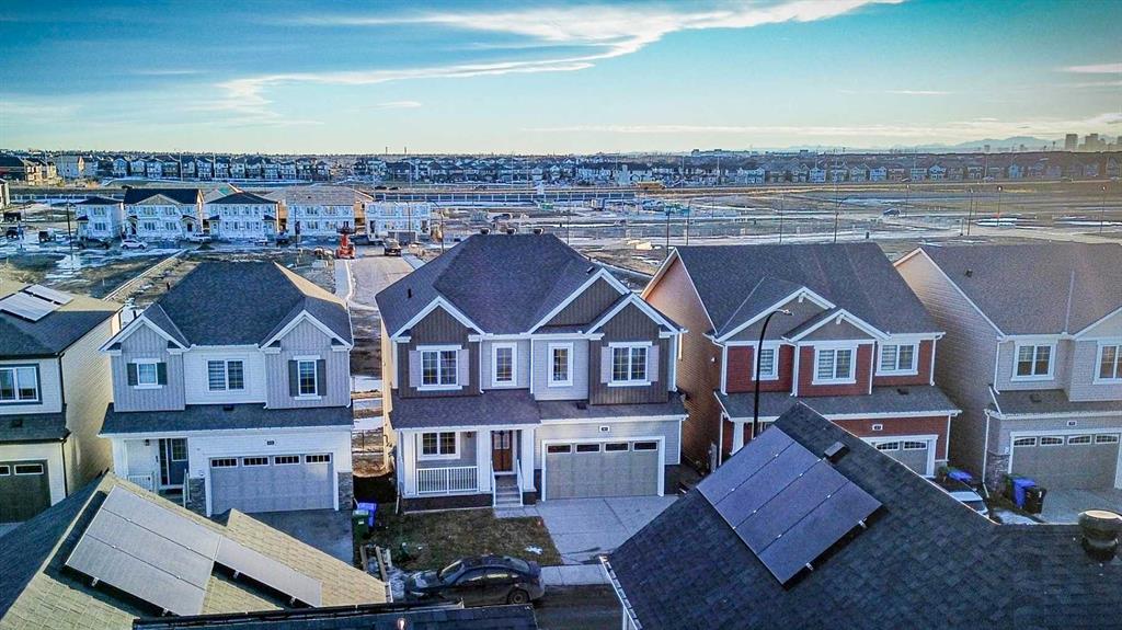 Brand New, Beautiful , fully upgraded luxury home in the desirable community of Cityscape. Offering 2,802 sq. ft. of well-designed living space, this home features 5 bedrooms, including 1 main-floor bedroom, 2 primary bedrooms, and a bonus room upstairs. The open-concept main floor showcases an upgraded kitchen with built-in appliances, premium cabinetry, a large island, and elegant finishes. Large windows throughout the home provide an abundance of natural light and stunning mountain range views. The walkout basement offers excellent future development potential. Additional highlights include a double attached garage, solar panels, and a backyard backing onto green space for added privacy. Conveniently located close to parks, schools, shopping, public transit, and with easy access to Stoney Trail, Metis Trail, and Calgary International Airport. An exceptional opportunity to own a spacious, modern home in a family-friendly community. Book your private showing today.