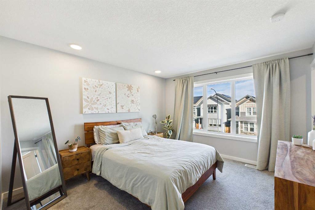 **Open House Sat March 14 2-4:30pm, Sun March 15 2-4:30pm** Welcome to this beautifully upgraded detached home in Rangeview, Calgary’s first garden-to-table community, located just minutes from the growing amenities of Seton. RARE FEATURES: 23’ x 23’ detached double garage, 10.68 kW solar array, separate side entrance, and 9’ basement ceilings, offering excellent future suite potential (subject to city approval). This popular Sasha model by Homes by Avi offers 1,565 sq. ft. of thoughtfully designed living space with 3 bedrooms, 2.5 bathrooms, and a versatile upstairs bonus room. The bright open-concept main floor features 9’ ceilings, a stylish kitchen with quartz countertops, central island, stainless steel appliances, and and a spacious dining area ideal for gatherings and everyday living, plus a pocket office perfect for working from home. Upstairs you’ll find three spacious bedrooms, including a comfortable primary retreat with an upgraded ensuite shower, along with a flexible bonus space ideal for a family room, kids’ play area, or additional workspace. You’ll also enjoy the convenience of top floor laundry and 4pce bathroom. Since purchasing the home, the owners have completed significant value-adding upgrades, including the detached double garage, full landscaping, window coverings, and the impressive 10.68 kW DC solar system, helping reduce long-term energy costs while making the home completely move-in ready. The basement is ready for development with 9’ ceilings and a separate side entrance, providing outstanding flexibility for future living space or potential suite development. Enjoy the welcoming full front porch, west-facing backyard, and convenient laned access, all in one of Calgary’s most innovative and community-focused neighbourhoods. Modern design, energy efficiency, and future income potential—this is a home you won’t want to miss.