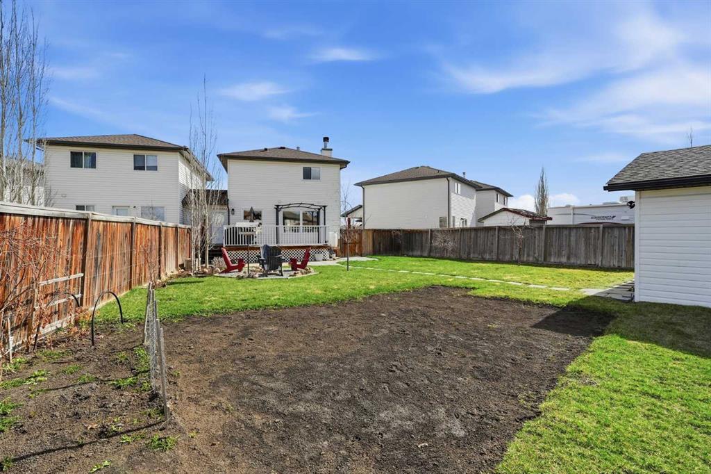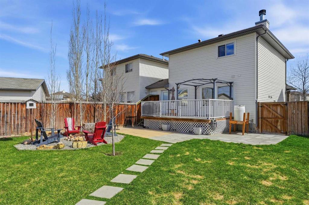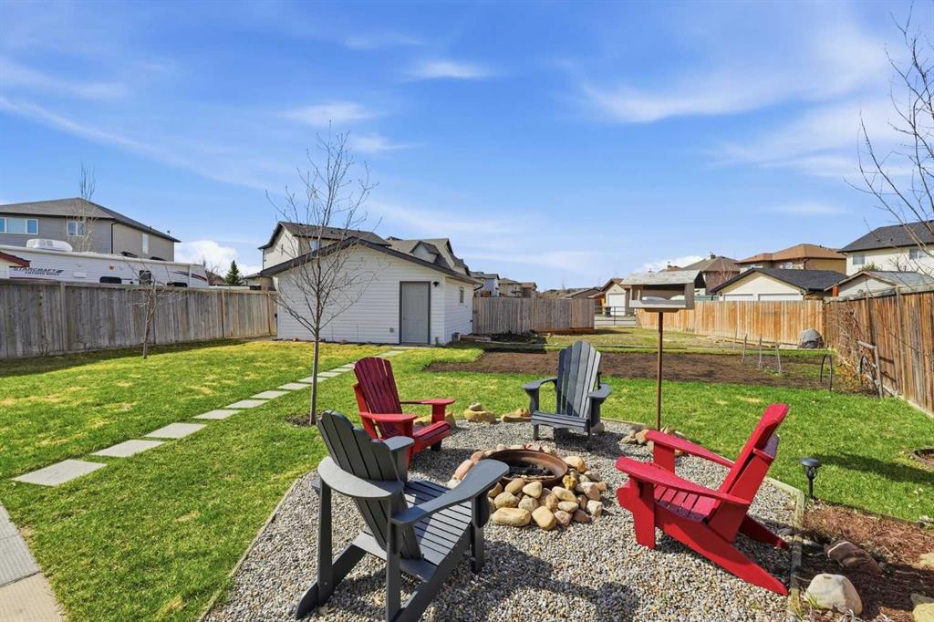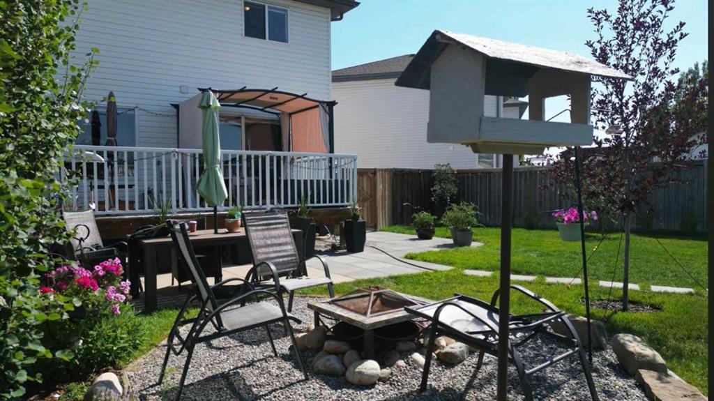 What really stands out here is the value of space. In a smaller town setting, you get a lot more house and a lot more yard for your money than you would in the city. This pie shaped lot is a perfect example. The backyard opens right up with a large deck, a firepit area, and a fully established garden that’s ready for the season. There’s still plenty of open space left to actually live in the yard, not just look at it.