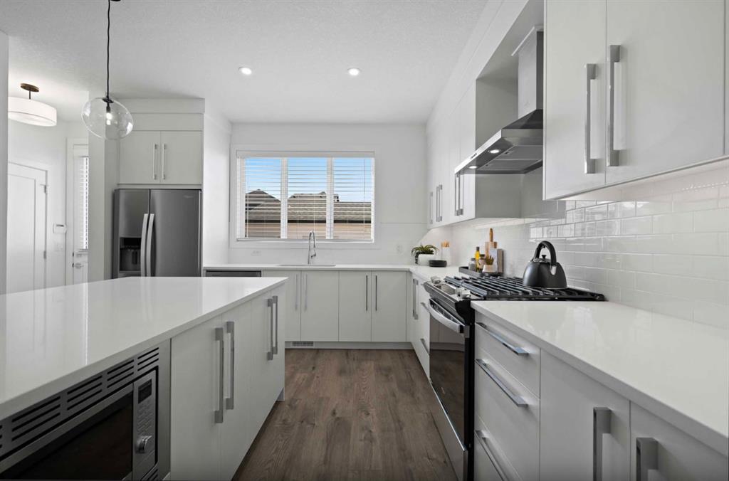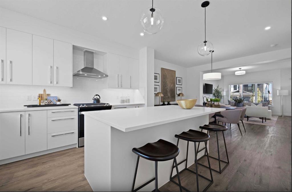 This thoughtfully designed home by Truman blends contemporary style with quality finishes and attention to detail. With three bedrooms and an open-concept layout, it offers a comfortable and practical space for modern living. At the rear of the home, the kitchen is both stylish and functional—featuring full-height cabinetry, soft-close doors and drawers, quartz countertops, a stainless steel appliance package, and a spacious pantry for added storage. The main floor is enhanced by 9′ ceilings and durable LVP flooring, creating a bright, open atmosphere that flows seamlessly through the living and dining areas. Upstairs, the primary bedroom provides a peaceful retreat with a walk-in closet and a stylish 3-piece ensuite. Two additional bedrooms offer flexible space for children, guests, or a home office. A 4-piece bathroom and an upper-level laundry — equipped with a washer and dryer—add everyday convenience. The unfinished basement, with its separate side entrance, presents a blank canvas for your future plans—whether you envision a family room, home gym, or additional storage. Located in the newly established community of Lewisburg – a thoughtfully planned, family-friendly community that offers the best of both worlds: tranquility and connectivity. Surrounded by parks, green spaces, and walking paths, it encourages an active, outdoor lifestyle. Photo gallery of similar home*