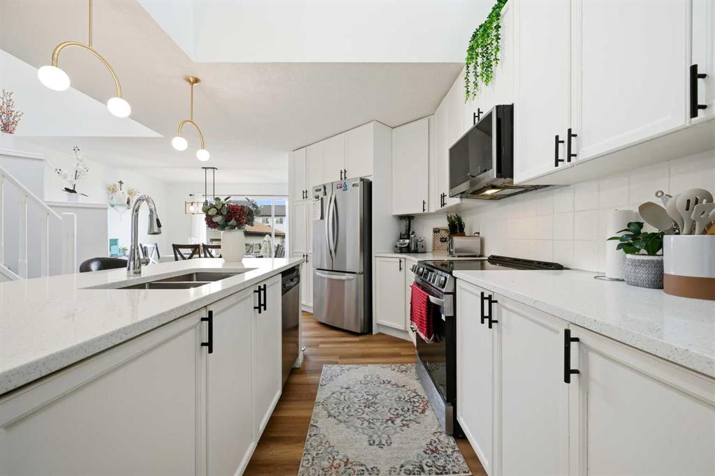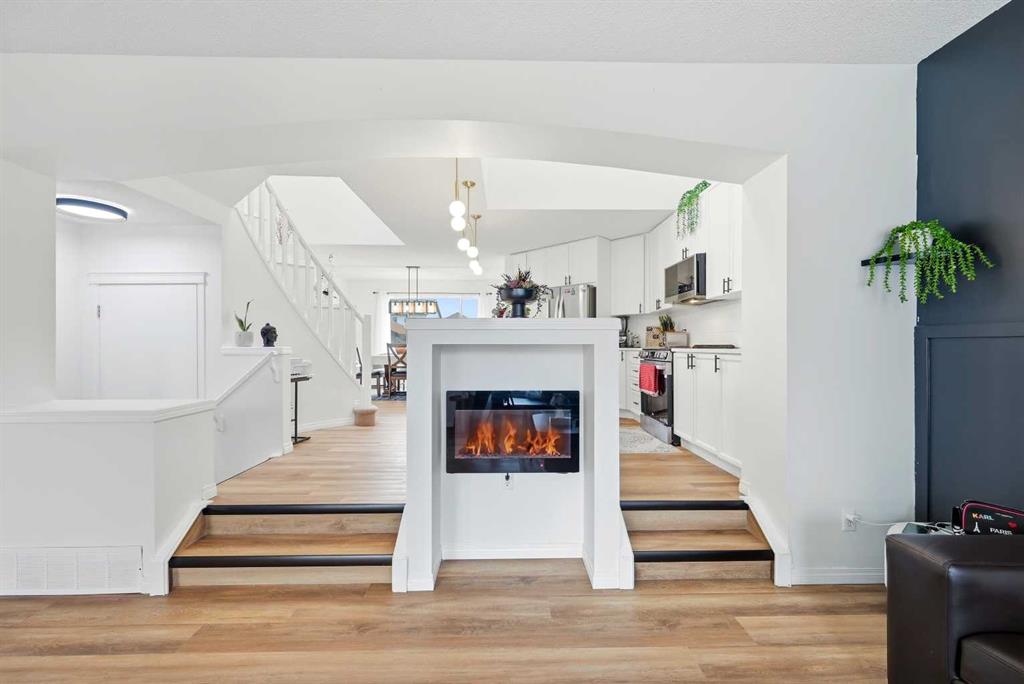 Welcome to 41 New Brighton Green SE, a FULLY RENOVATED bright and inviting home with a unique and practical layout. This well kept property sit on a EAST-WEST lot and offers three bedrooms and two and a half bathrooms, making it perfect for families or first time buyers. The main floor is open and filled with natural light, featuring an open to above kitchen that creates a spacious feel. The sunken living room is warm and cozy, complete with an electric fireplace that is ideal for relaxing evenings or entertaining guests. The living, dining, and kitchen areas flow smoothly together, giving plenty of room for daily living and gatherings. A discreet half bath and small mud area add extra convenience on the main level. Upstairs, the rounded staircase leads to a bright landing with a skylight. The primary bedroom is generously sized with a walk in closet and a private 4 piece ensuite. Two more comfortable bedrooms and another full bathroom complete the upper floor. Outside, enjoy the west-facing fenced backyard with an oversized double parking area, perfect for outdoor enjoyment and extra parking. Large windows bring in plenty of sunlight throughout the day, making every room feel bright and welcoming. The layout is easy to maintain and works well for both everyday living and special occasions, offering a move in ready home full of comfort and charm.