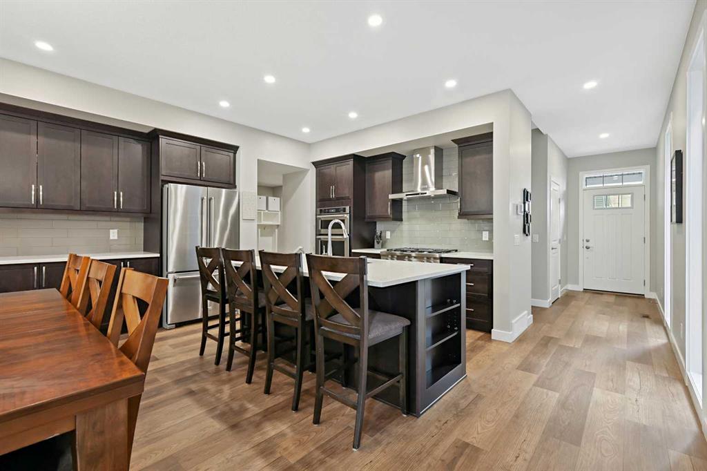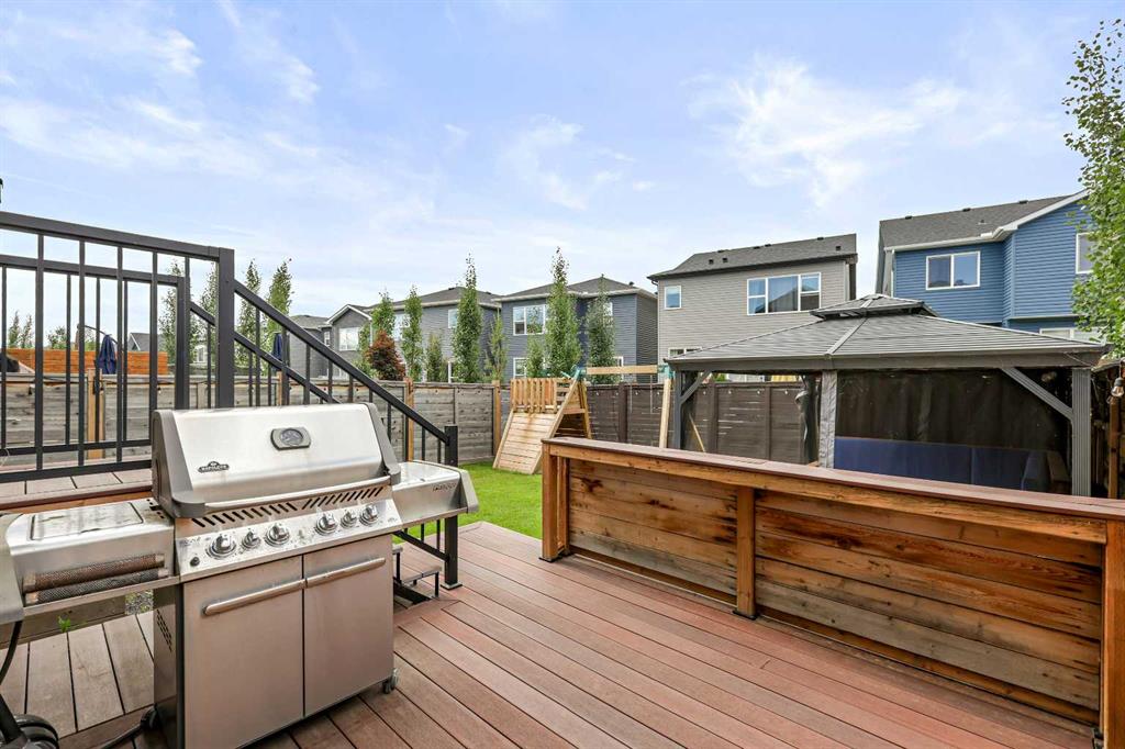 ** Quick Possession – Move in ready ** Custom Jayman BUILT home – Award Winning Madeline 24 Model ** Family Approved ** SOUTH BACKYARD ** Extensive upgrades and superior quality, with over 2338+ square feet of luxurious Air-Conditioned living space. You will be impressed with the privacy of an oversized homesite featuring a private, south-west-facing backyard with a bespoke 10′ x 10′ upper deck and a lower 18′ x 11′ concrete patio and gazebo. Enjoy this convenient Seton Location – steps away from ponds, parks, pathways, schools, shopping, soccer fields, bike paths, transit, a clubhouse, 212 Avenue, and expressways. Rich curb appeal with architectural features – dramatic rooflines, an attached garage, and a full-sized concrete driveway, along with covered entry and columns, complete this spectacular elevation. There are extensive upgrades throughout, and the details are superb. This is a must-see home! Chef’s kitchen includes quartz countertops, custom light & dark wood style cabinets/doors, extension trims, KitchenAid stainless steel fridge/dishwasher/microwave/wall oven, six burner gas cooktop, recessed lighting, oversized central island, island with a flush eating bar & brown Silgranit undermount sink, walk-in 7.5′ x 5′ butlers pantry with storage & a large central breakfast nook. The main floor layout features an office/den, a family room with an electric fireplace and stone detailing, a family-sized open foyer with a side window, and rich, wide-plank LVP floors that run from the front entrance through the main floor, stairs, and the upper level. The large mud room provides additional storage lockers and offers easy access to the garage. Upstairs, you’ll find the upper three bedrooms, a bonus room, and a laundry room. The primary bedroom suite includes his-and-hers vanity sinks, a massive walk-in closet, an easy connection to the upper laundry room, an oversized shower with a glass door, and a gorgeous soaker tub to complete this stunning spa-like en-suite. BONUS: The unfinished basement provides ample space for all your plans. Plus, smart home technology, 6 solar panels, Navien tankless water heater, 9′ main floor & high basement ceilings, generously sized bedrooms with large windows, future radon basement piping rough-in, plumbing/lighting, and electrical fixtures upgraded! Don’t miss this opportunity. Call your friendly REALTOR(R) to book your viewing right away!