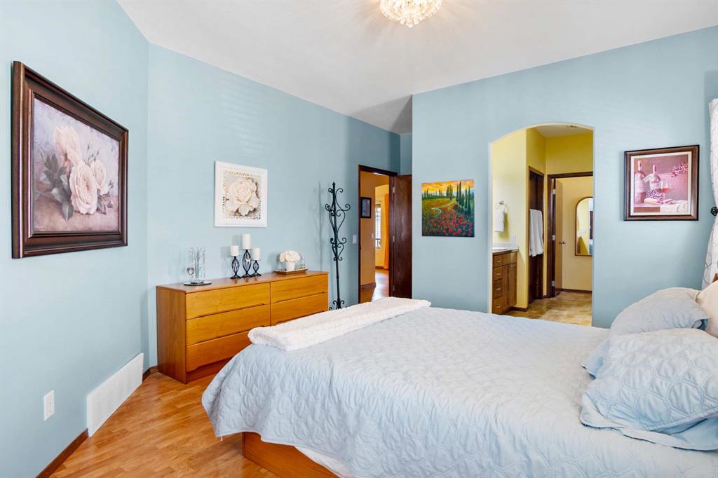 Welcome to this beautifully maintained age-restricted triplex condo, where comfort and lifestyle come together effortlessly. Bathed in natural sunlight, this inviting home offers a warm, airy ambiance throughout, creating the perfect setting for both relaxation and entertaining. The spacious main level features a stunning primary retreat complete with a luxurious 5-piece ensuite, providing a private sanctuary to unwind. An attached double garage adds everyday convenience, while thoughtful design ensures easy, low-maintenance living. Downstairs, you’ll find a fully developed basement, featuring cozy in floor heat and offering exceptional versatility, including two additional bedrooms, a generous family room, and abundant storage space. A standout feature is the walk-in wine cooler—perfect for collectors or those who love to entertain in style.