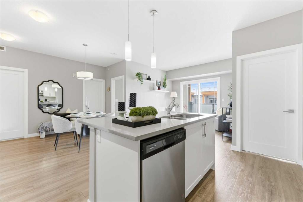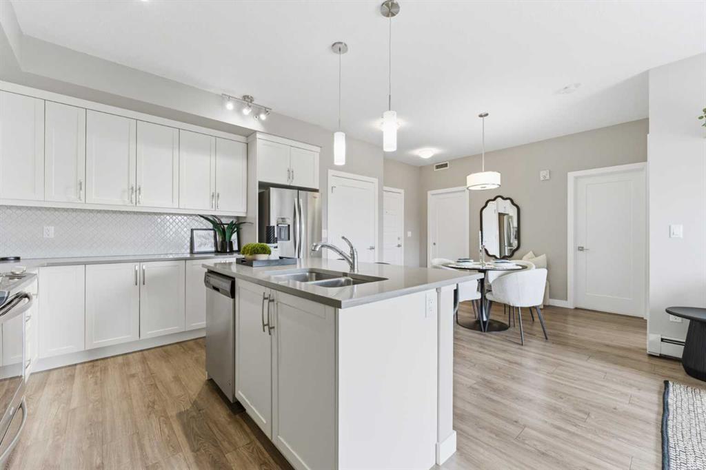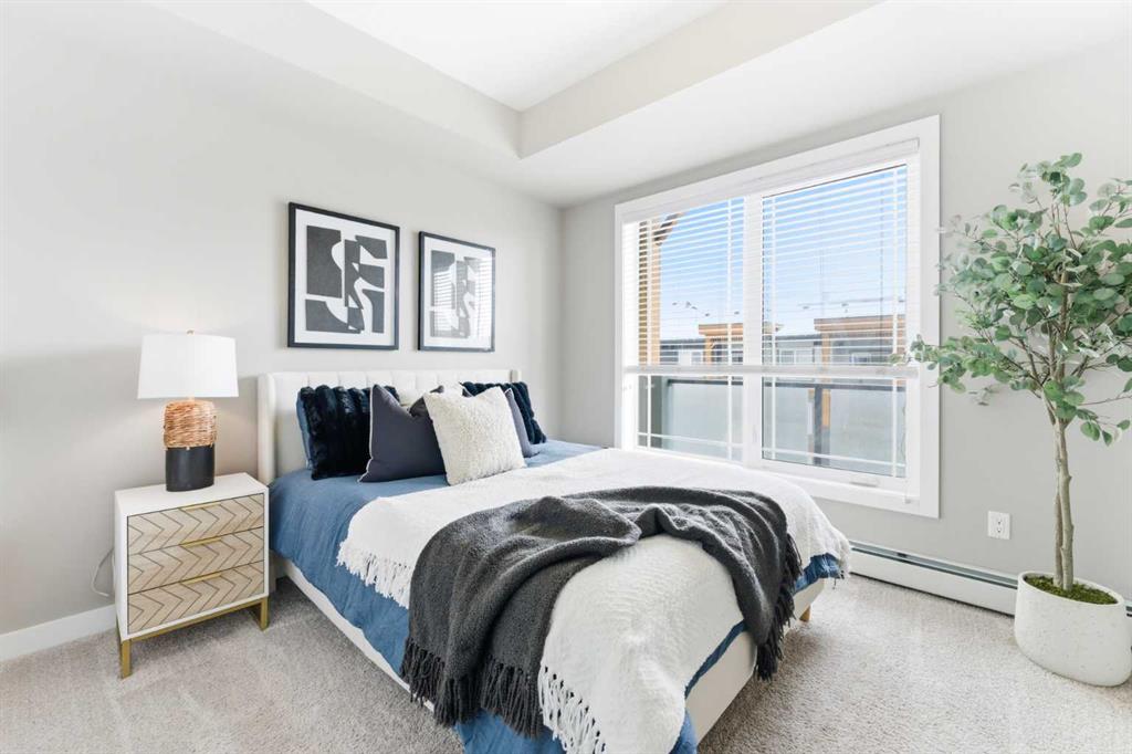 Available Immediately. TOP FLOOR 2-bedroom, 2-bathroom unit in the highly sought-after Auburn Bay Lake Community — a rare opportunity to enjoy true privacy with no neighbours above you. This bright and inviting home features a EXTRA large east-facing balcony that extends your outdoor seasons and fills the interior with morning light. From the moment you walk in, you’ll appreciate the 9 ft ceilings and abundant natural light that create a spacious, airy atmosphere. The open-concept layout easily accommodates a full dining table and is ideal for both everyday living and entertaining. The kitchen is a chef’s delight, featuring gleaming white cabinetry, stainless steel appliances, stone countertops, a designer tile backsplash, and a generous island perfect for meal prep and casual dining. The primary bedroom is a serene retreat with a walk-in closet and a well-appointed ensuite offering dual sinks and an easy-access shower — ideal for those seeking comfort and convenience while downsizing. The second bedroom is impressively large and positioned on the opposite side of the unit, providing excellent privacy for guests or family members. A full second bathroom with a bathtub and in-suite laundry add to the functionality of this well-designed floor plan. You’ll love the security and convenience of underground heated parking and an additional storage locker. The building’s contemporary architecture and clean design enhance the overall appeal. As an Auburn Bay resident, you’ll enjoy year-round lake access included through HOA fees. The lake offers swimming, fishing, paddleboarding, skating, and a wide range of adult and youth programs. Additional community amenities include tennis courts, picnic shelters, a gymnasium, and even a disc golf course. The location is exceptional — just one block from everyday essentials and fitness options in Auburn Station, and only minutes to Seton’s vibrant Gateway Retail District featuring restaurants, major retailers, Superstore, Cineplex VIP Cinemas, the South Health Campus, YMCA, and the public library. Plus, you’ll appreciate easy access to schools, public transit, and major routes such as 52nd Street, Stoney Trail, and Deerfoot Trail. The Auburn off-leash dog park is also just a short drive away. Don’t miss your chance to own in this vibrant lake community. Book your private showing today and make this stunning top-floor home yours.