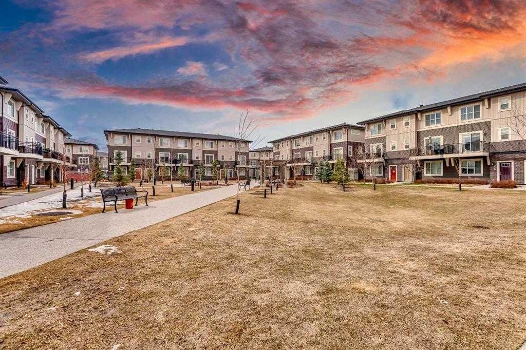 BEAUTIFUL & SPACIOUS 1560+ SQ. FOOT 3-STOREY TOWNHOME IN DESIRABLE CORNERSTONE, COMPLETE WITH A DOUBLE ATTACHED HEATED GARAGE FOR LESS THAN $390K! THIS HOME FEATURES A BEAUTIFUL COURTYARD PARK RIGHT OUTSIDE THE FRONT DOOR. IMAGINE BEING ABLE TO WATCH YOUR KIDS PLAYING IN THE PARK FROM THE COMFORT OF YOUR LIVING ROOM! As you walk inside the townhome, you will immediately notice the stunning upgraded tiled flooring throughout the entrance foyer and access to the HEATED double attached garage! From inside your cozy home into your warm car and off you go, without feeling the cold or touching the snow! The entrance level features the 1st of 4 bedrooms in the home, complete with a closet & large window facing the park; perfect for a guest bedroom, home office, kids’ playroom, or home gym. Head upstairs to the OPEN-CONCEPT main floor—notice the abundance of natural light? With huge south-facing windows in the dining room and unobstructed park-facing windows in the living room, this home is always filled with sunlight! This kitchen is fit for any home chef while keeping functionality for your family in mind: featuring a kitchen island, ample counter & cabinet space, and a dedicated spacious dining room capable of easily hosting an 8-seat dinner table! The spacious living room is easily able to accommodate a huge comfy sofa across from the TV mount location, with built-in shelving & wire-hiding conduits. From the living room, access the park-facing balcony—the perfect outdoor space to enjoy your morning coffee or host a summer BBQ! This floor is completed with an additional nook for a work-from-home desk and a half bathroom for convenience & guests. The upper level hosts the massive master bedroom, easily able to accommodate a king-size bed and all your additional bedroom furniture. This room features an essential ensuite full bathroom complete with upgraded tile floors and a full bathtub. Tired of fighting for closet space? Check out the spacious walk-in closet! The upstairs features another 2 spacious bedrooms and another full bathroom complete with another bathtub. Still upstairs, the convenience of full-sized stacked laundry. AS THEY SAY: LOCATION, LOCATION, LOCATION! Grocery Store, Many Restaurants, Major Banks, & Various Retail Stores are all within walking distance! This home is minutes from major highways including both Stoney & Deerfoot Trail, providing quick access to all areas of Calgary. Lastly, the townhome complex, this well-managed condominium offers low condo fees! HOW DOES IT GET BETTER THAN THIS? BOOK YOUR SHOWING TODAY!!