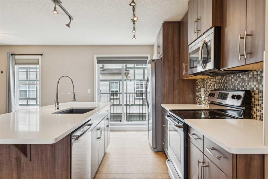 Welcome to Cranston! This three-bedroom townhouse with a double attached garage is the one you have been waiting for. As you enter this open concept floor plan, cork flooring will lead you through a good-sized living room, dining area, and into a beautiful kitchen that features a large island, quartz countertops, stainless steel appliances, plenty of cupboard and counter space, and a pantry area. Just off the kitchen is a breakfast nook, the main floor is finished off with a powder room. Upstairs, you have three bedrooms, the primary features a walk-in closet and a full ensuite. Down the hall are two additional good-sized bedrooms and another full washroom. The basement offers plenty of storage, access to the double garage, laundry and mech space. All of this is a great location, close to the community centre, shopping, restaurants, pubs, schools, and much more. Check out the 3D tour for a better look and call your favourite realtor to book a private viewing. A move you’ll be glad you made!