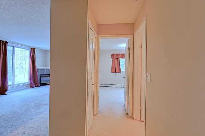 Welcome to the charming community of McKenzie Towne! This bright and spacious 2-bedroom, 2-bathroom main-floor corner unit offers 985 sq. ft. of living space, making it the largest unit in the complex. The open-concept layout is filled with natural light and features a generous living room with a cozy corner gas fireplace, double doors leading to a well-sized patio, a dedicated dining area, and a functional kitchen with a large breakfast bar.