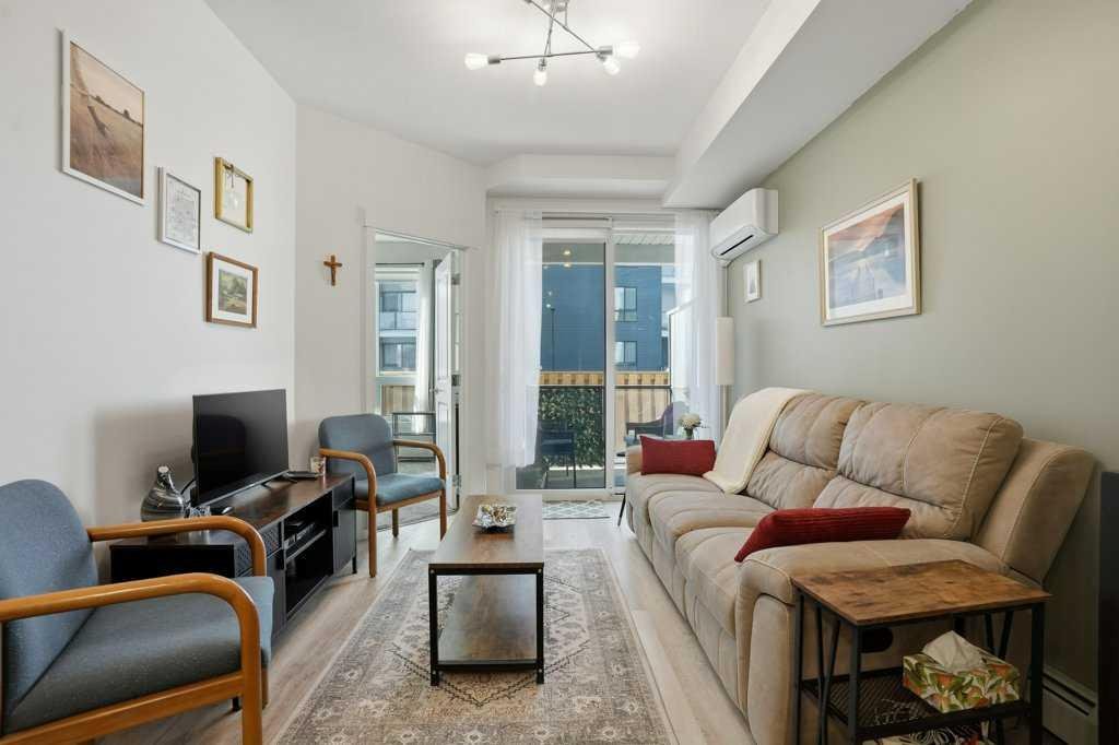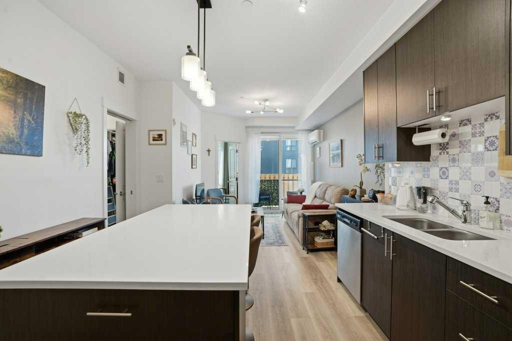 and convenience. The open-concept layout welcomes you with a spacious foyer that flows seamlessly into the kitchen, living area, and a private West facing balcony ideal for entertaining or relaxing at home. Enjoy a bright, neutral color palette, durable vinyl plank flooring, and stainless-steel appliances. This End unit features Large west facing windows flooding the living room and bedroom with natural light.