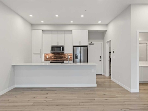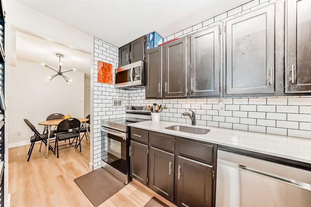 Welcome to Unit 4105 of Southampton Greens — a thoughtfully renovated 1-bedroom, 1-bath MAIN FLOOR condo unit in a quiet location within the complex. Updated in 2023 with quartz countertops, subway tile backsplash, new appliances, under-cabinet lighting, and plumbing fixtures. The unit features a bright and functional layout with vinyl plank flooring throughout for a clean and cohesive look. Storage is never an issue with in-suite storage room plus two additional outdoor storage rooms on the 15 ft. x 6 ft. south-facing patio. Enjoy the expansive green space across the patio ideal for relaxing, gardening, or soaking up the sun. The complex offers excellent amenities including playground, party room, basketball court, tennis court, table tennis, fitness room, and visitor parking. This unit comes with one assigned, plug-in, parking stall. Centrally located with easy access to major routes and everyday essentials — minutes to Anderson LRT, Southcentre/Chinook Mall, numerous schools and parks. This unit offers convenience, comfort and enjoyment.