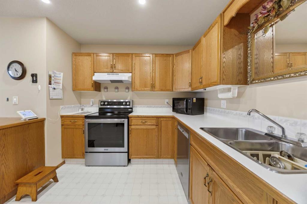 Welcome to this immaculate 50+ half duplex, ideally located in a quiet cul-de-sac and backing onto walking paths—perfect for those seeking a peaceful, low-maintenance lifestyle. This well-cared-for home offers 2 bedrooms on the main floor, including one with direct access to a covered, west facing enclosed 13’2 x 9’10 deck—an ideal space to enjoy your morning coffee or unwind in the evenings. The kitchen has lots of oak cabinets and space for a small table or a moveable island, a combination dining/livingroom with 2 large bay windows, 4-piece main bathroom, and a convenient 2-piece ensuite. Main floor laundry adds to the ease of everyday living, and a door off the front entrance provides direct access to the attached single garage. The fully developed basement expands your living space with plenty of storage space, a 3-piece bathroom and two versatile areas—perfect for a family room, hobby space, or accommodating guests.