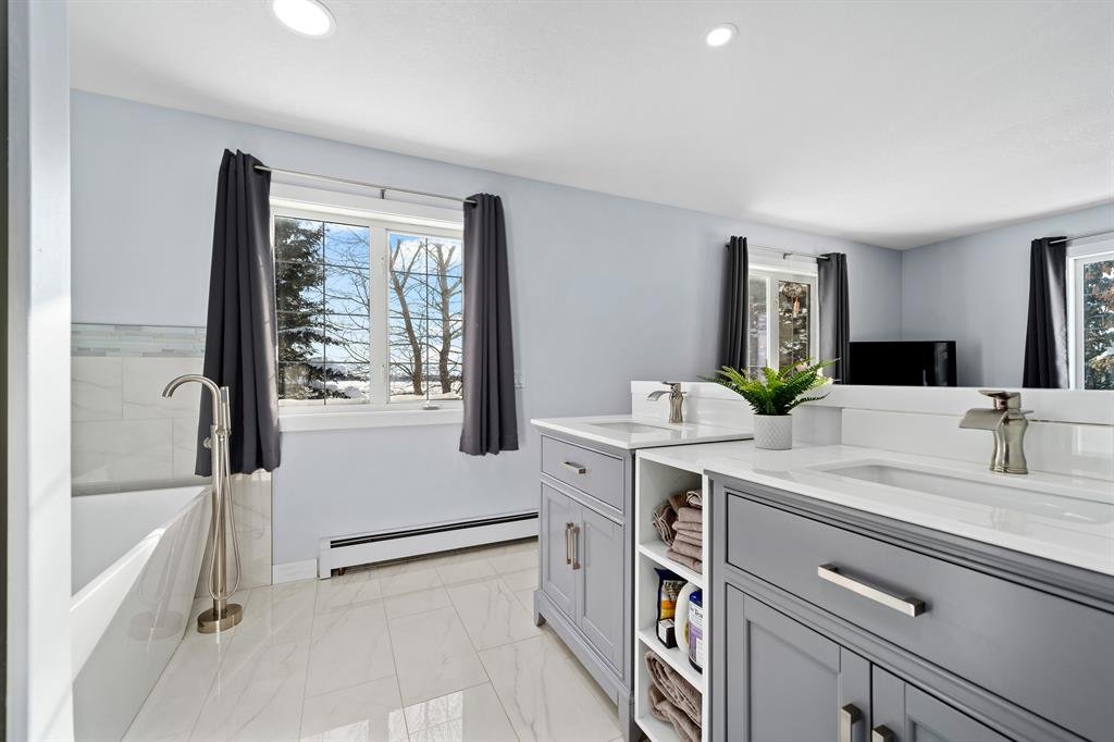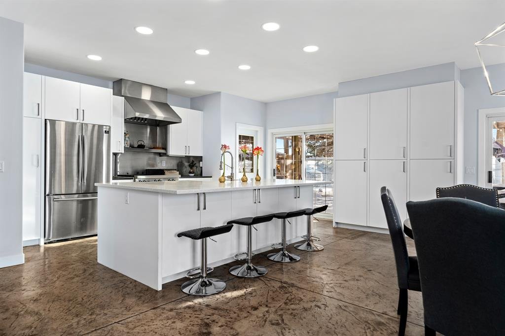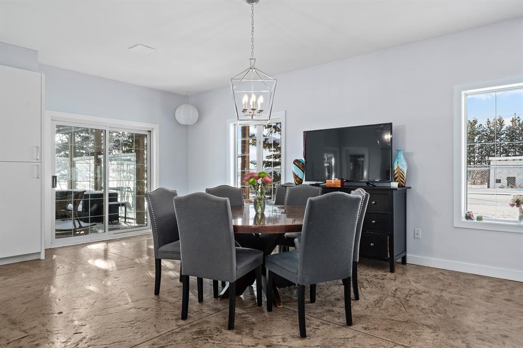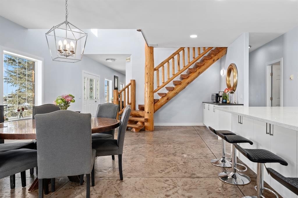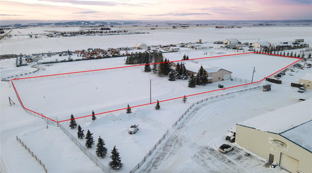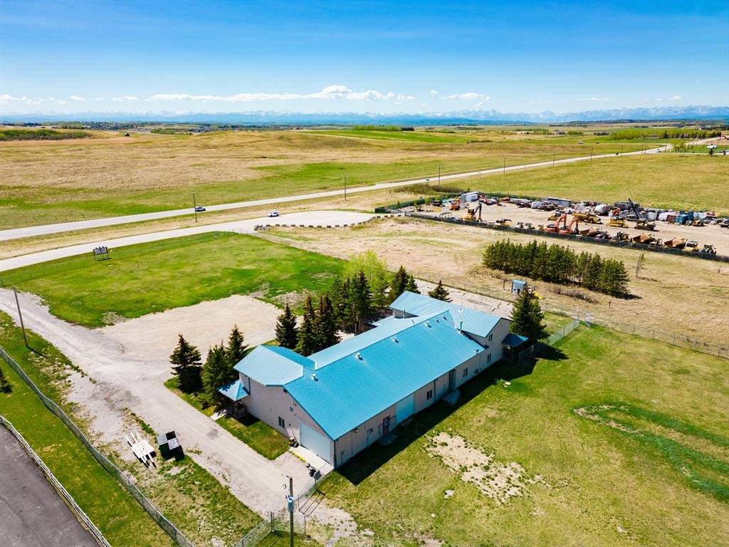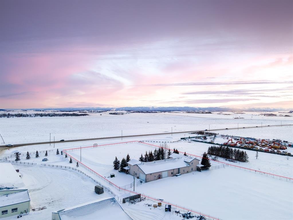 RARE LIVE/WORK OPPORTUNITY WITH EXCELLENT ROAD EXPOSURE FOR YOUR BUSINESS! 3.35 ACRES, ZONED C-HWY (MIXED USE, SEE SUPPLEMENTS FOR DETAILS). This one-of-a-kind property is located 10 minutes north of Cochrane (HWY 22 & HWY 567) and offers a fully renovated 2759 SQ FT home with a 4169 SQ FT commercial space. The bright and open main floor features a spacious living room with office space, a cozy dining room, and a 3 piece bath/laundry all highlighted by gorgeous stamped concrete floors. The luxurious chef’s kitchen offers quartz countertops, a spacious island/breakfast bar, a coffee station with a second sink, ample cabinet space, and high-end appliances – perfect for entertaining and the at-home gourmet. Upstairs, relax in the primary retreat which includes an upscale 5-piece ensuite (relaxing soaker tub, stand-up shower, double sinks), a large walk-in closet, and views of the Rocky Mountains. Completing the upstairs are 3 additional bedrooms, a 4 piece bathroom, and plenty of storage. You will fall in love with the oversized (49’2″ x 21’2″ 0), heated/insulated garage where you could easily park 6 vehicles/toys – perfect for a home mechanic, car enthusiast, or tradesperson. The commercial space offers a huge showroom, front desk, office, 2 bathrooms, loft/office, and additional garage. This space is ideal for any entrepreneur or established business. Other features included a custom log wood staircase, a large patio, new chain link fencing & amazing views. Ideally located just minutes from Cochrane and a short commute to Calgary this property offers huge potential and would be hard to recreate. Please reach out for more details and to arrange a private viewing. *** RESIDENTIAL – 2751 SQ FT, COMMERCIAL – 4169 SQ FT. ***