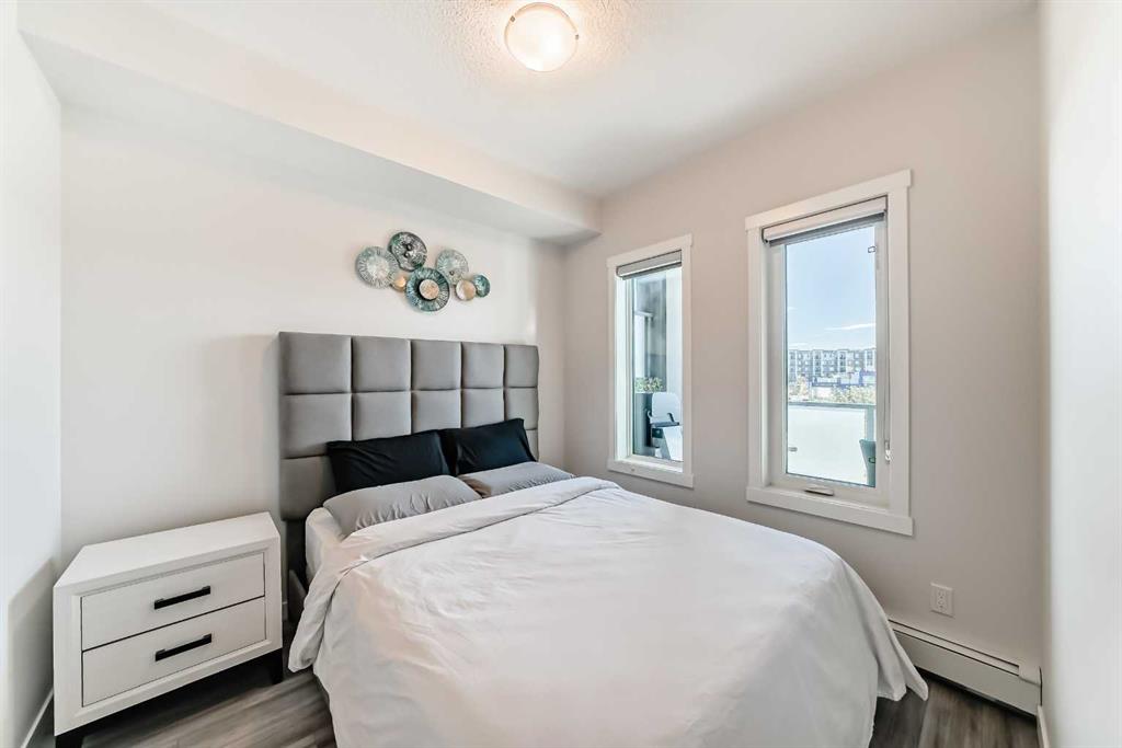 Welcome to your new home at 411, 138 Sage valley common NW. This exceptionally designed and well-maintained condo unit shows pride of ownership at all angles and is in one of Calgary’s finest and well-sought-after community of Sage Hill. This unit offers a sanctuary of light and space that will surely pick your interest when you step in through the door. It boasts of 520 square feet of developed space that includes an open concept layout with a seamless flow from the beautiful kitchen to a living room that overlooks a good size balcony. This unit comes with a large primary bedroom with two windows allowing for lots of natural lighting, a walk-in-closet, an in-suite laundry, a large 4-piece bath, and with Luxury vinyl planks flooring. The good size kitchen is equipped with stainless steel appliances, upgraded high end cabinetry, and a central island with quartz countertops.