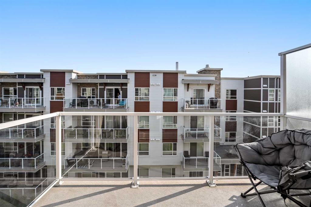Wow! Built by award winning CEDARGLEN LIVING is this top floor SOUTH facing unit in spotless condition! This gorgeous one bedroom one bath condo features 583 sqft (RMS) of thoughtful design of space, features an open kitchen with a huge eye catching island with premium quartz stone, sleek white cabinets and trendy stainless steel appliances. All finished with 9ft ceiling and luxury LVP flooring through out! The inviting living room is flooded with plenty of sunlight most of the day and a patio door leads to a sunny south facing balcony! Good sized master bedroom has a large walk-in closet and south facing window. Both living room patio door and bedroom window has been upgraded to remote window blinds with blackout fabric. Bonus plus laundry room is spacious and has lots of room for in-unit storage. This package also comes roughed-in AC and 1 titled surface parking stall. Pet friendly building allows 2 pets up to max 35kgs. One owner home kept in like new condition, shows 10/10! Location is close to all major roads and only 10 minutes drive to YYC airport!