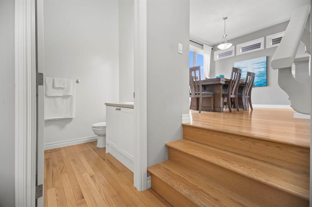** OPEN HOUSE Saturday Jan 3, 1-3 pm ** Welcome to 411 River Heights Crescent, a beautifully appointed home where timeless design meets modern sustainability. Thoughtfully designed with high ceilings, expansive windows, and a naturally flowing floor plan, this residence offers a perfect blend of light, space, and comfort. The main level features a bright and open living area anchored by a striking stone-surround gas fireplace and framed by large south-facing windows. The elegant kitchen is a true centerpiece showcasing timeless white cabinetry, a farmhouse sink, quartz countertops, hidden microwave, and a large uninterrupted island ideal for baking, entertaining, or family meals. Hardwood floating shelves add warmth and charm, while a 3rd rack dishwasher and spacious pantry enhance everyday functionality. Upstairs, the primary suite is a tranquil retreat with oversized windows, a large walk-in closet, and a spa-inspired ensuite with large vanity with generous storage, and a relaxing corner tub. Two additional bedrooms and a full bathroom with a large vanity complete the upper level. The fully developed basement extends the living space with a large, versatile recreation area perfect for hobbies, fitness, or family movie nights along with an additional bedroom and tons of storage space. This home stands apart with its professionally installed 7.36 kW Net Zero Solar System, designed for peak efficiency and long-term savings – generating over 40,900 kWh of energy in its first 5 years. Over its lifetime it will offset 151,000 lbs of coal; this system delivers near net-zero electricity costs averaging under $100/month for a family of six. Environmentally, it’s equivalent to planting 3,600+ trees or removing a vehicle from the road each year. Outside, the beautifully landscaped yard features raised garden beds, established perennials, and both north- and south-facing outdoor living spaces, a sunny front veranda and a private back deck off the dining room that has double sliding doors to extend the space naturally for summer gatherings. It has a great size yard with a playhouse for the kids to enjoy. Located in a quiet, low-traffic section of River Heights Crescent, this home offers quick access to parks, playgrounds, schools, and walking paths, with easy routes to downtown Cochrane and Calgary. It’s a rare opportunity to enjoy timeless craftsmanship, a smart layout, and modern energy independence all in one remarkable home.