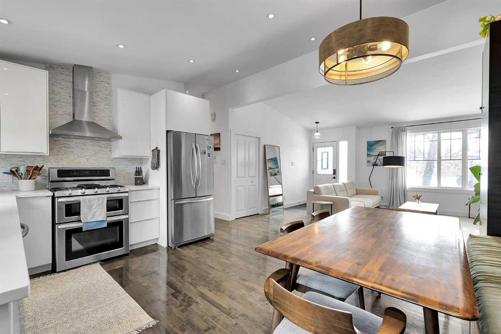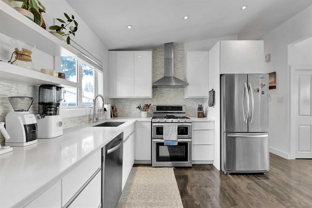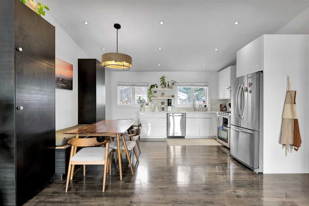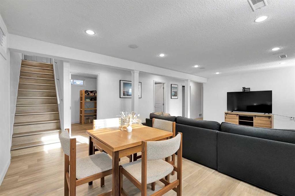 Charming home in a prime Brentwood location—just a short walk to the LRT and a quick 5 minute drive to the University of Calgary. Enjoy the convenience of nearby schools, baseball fields, and an off-leash dog park, making this an ideal setting for families and outdoor enthusiasts alike. Bright and open, this home features a spacious kitchen with quartz countertops, stainless steel appliances, upgraded lighting, ample cabinetry, and a vaulted ceiling. The inviting living area showcases a tiled fireplace, while the main floor offers three well-sized bedrooms and a beautifully renovated bathroom complete with a soaker tub, dual sinks, and heated floors. Hardwood flooring and modern light fixtures run throughout the main level.
