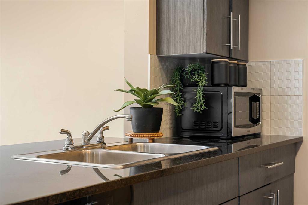 Are you looking for a smart investment or a place to call your own at an attractive price point with low condo fees? This could be the one. This fantastic condo delivers comfort, practicality, and real value with low condo fee’s. Situated on the TOP FLOOR , this MOVE-IN-READY unit offers a fabulous peaceful PARK/POND VIEW and a setting you’ll appreciate every day. This well-kept and spacious 2-bedroom, 1-bathroom condo is located in the family-friendly, amenity-filled community of Saddle Ridge. The location is hard to beat, with quick access to the Saddletown C-Train Station, the Genesis Centre, nearby restaurants, and an excellent proximity to a network of walking and biking paths. This bright top-floor unit spans nearly 700 sq. ft. and features an open-concept layout designed to make the most of the space. From the main living area, step onto the sun-filled south-facing balcony and take in relaxing views of the park and scenic pond — a great place to recharge or host guests. The kitchen flows seamlessly into the main living space and includes stone countertops, rich dark cabinetry, & generous counter space. The additional large counter makes it the perfect spot for everyday use, casual meals or hosting family and friends.