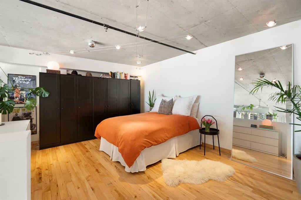 Welcome to a truly distinctive New York–inspired loft in the heart of Calgary, where industrial design meets modern versatility. Defined by soaring 16-foot ceilings and dramatic floor-to-ceiling north-facing windows, this one-of-a-kind space is flooded with consistent natural light while maintaining a comfortable, even temperature year-round. The open-concept layout is both striking and functional, offering a seamless blend of living, dining, and workspace zones. Polished concrete floors anchor the main level with an urban edge, while warm wood accents on the upper level and stairs add balance and character. Exposed mechanical elements and clean architectural lines create an authentic loft aesthetic rarely found in the city—an ideal backdrop for those who appreciate design, creativity, and flexibility in how they live and work. With zoning that supports both residential and commercial use, this property opens the door to a range of possibilities—from a stylish home base to a live/work studio or boutique office. It’s a space that adapts as your lifestyle evolves. Set within a quiet, pet-friendly, boutique building, residents enjoy a strong sense of community paired with rare inner-city tranquility. Amenities include a rooftop patio with gas BBQ hookups and skyline views, a landscaped courtyard, and a versatile common room with future fitness potential. A heated underground parkade adds everyday convenience, while condo fees that include heat, water, and electricity offer exceptional value and simplicity. A no short-term rental policy further reinforces the building’s peaceful, residential feel. Ideally located, this home offers immediate access to major roadways, making commuting simple and efficient. You’re just minutes from the Bow and Elbow rivers, extensive walking and biking pathways, and some of Calgary’s most vibrant neighborhoods, including Inglewood and Victoria Park. Enjoy close proximity to local cafes, restaurants, and nightlife, as well as the iconic Stampede Grounds. With transit located right outside your door, this is truly a connected and convenient urban lifestyle. Positioned in an area experiencing significant growth and revitalization, this property also presents a compelling investment opportunity, with future development and the new Scotiabank Saddledome project expected to further enhance long-term value. More than just a condo, this is a statement space, offering a rare combination of design, location, lifestyle, and community.
