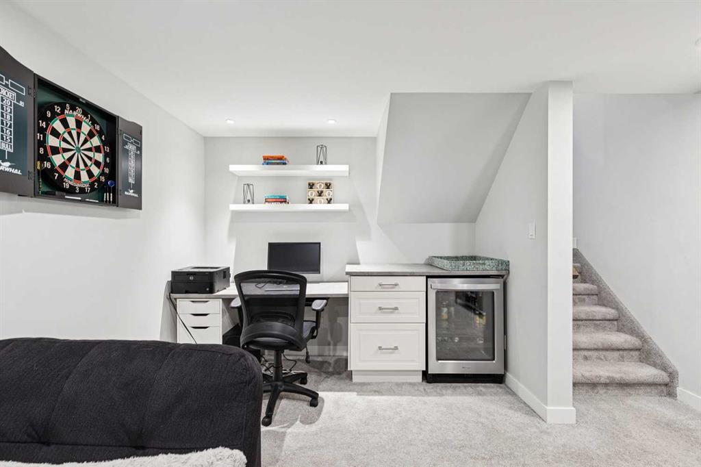 The lower levels add incredible versatility with a bright family room, a private bedroom featuring a beautifully renovated 3-piece ensuite with steam shower—ideal for guests or teens—a large recreation room with a stylish bar area and built-in desk, a dedicated home gym with new flooring and mirrors, and a well-designed laundry room with ample custom storage.