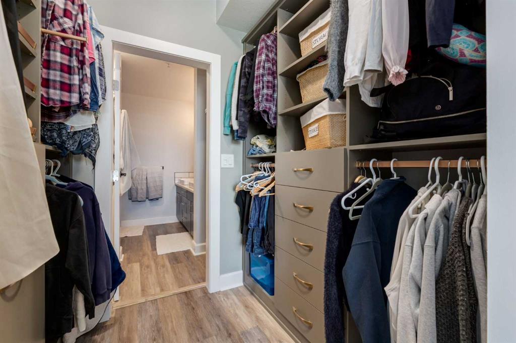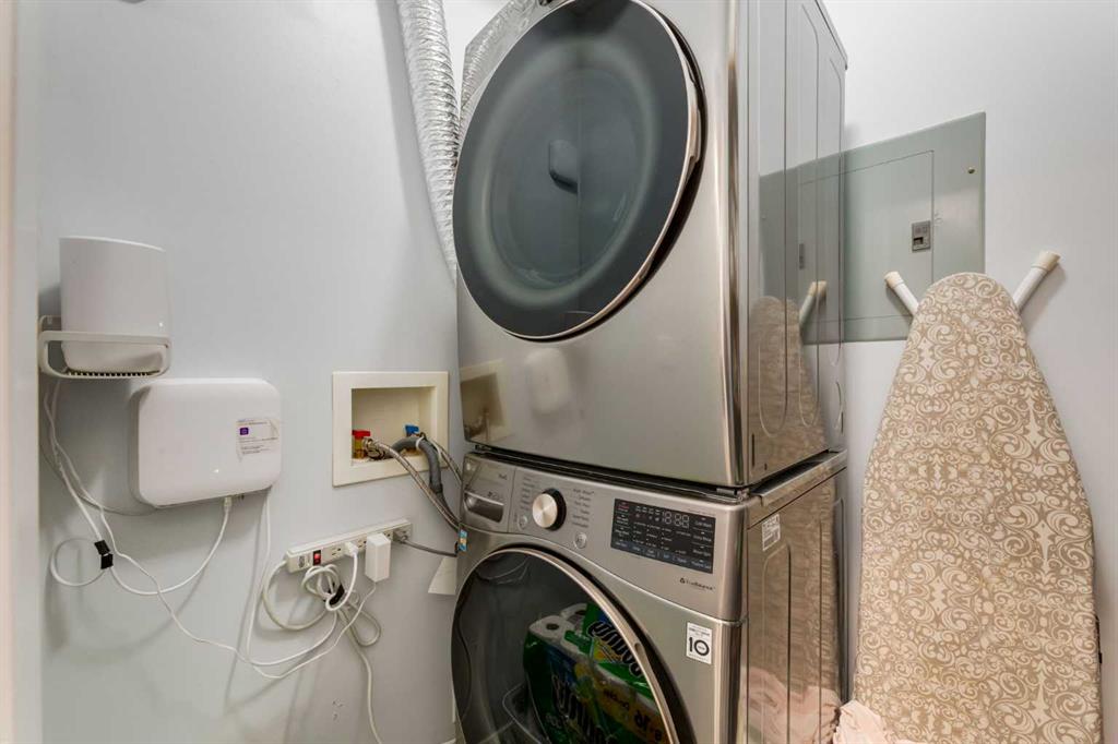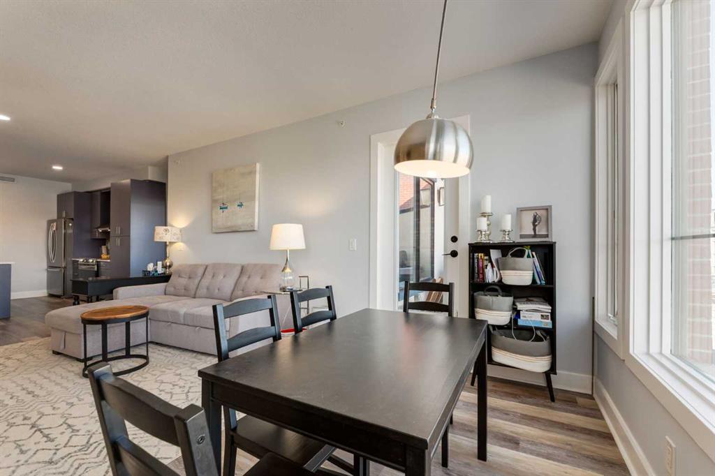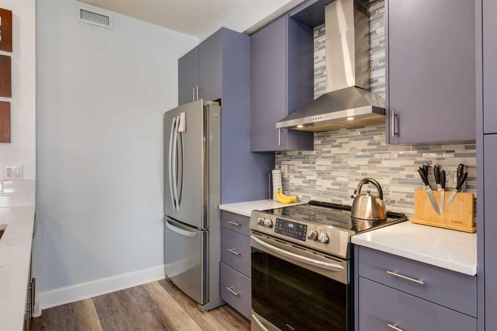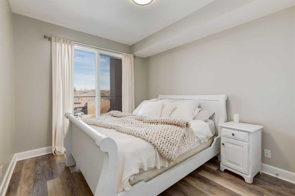 Welcome to Kensington living at its finest in The Providence Condo. This beautifully maintained building offers secure underground titled parking, storage, and a fully equipped fitness facility, all in one of Calgary’s most walkable and vibrant inner-city communities. Perched on the top floor, this fully renovated 2-bedroom, 2-bathroom residence showcases a bright contemporary design with refined industrial character. Thoughtfully curated finishes include Edison-style pendant lighting, a striking Chicago brick feature wall, wide plank luxury vinyl flooring, and a custom built coffee bar, that adds both style and function. The open-concept kitchen makes a bold statement with rich navy cabinetry, stainless steel appliances, quartz countertops, and classic subway tile backsplash—perfectly designed for everyday living and entertaining alike. Both bedrooms and the private balcony capture impressive views toward Kensington and Southern Alberta Institute of Technology, while the spacious primary retreat features a walk-through closet with storage space designed and installed by California Closets, leading to a beautifully updated ensuite complete with vessel sinks and elevated finishes. The 2nd bedroom has also had the California Closet treatment, because we know how important storage spaces are! Just steps from trendy restaurants, cafés, groceries, transit, and the pathways along the Bow River, this home delivers the ultimate urban lifestyle in one of Calgary’s most sought-after neighbourhoods