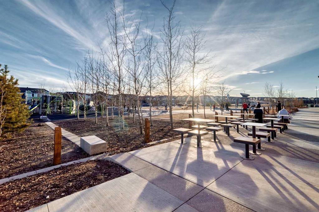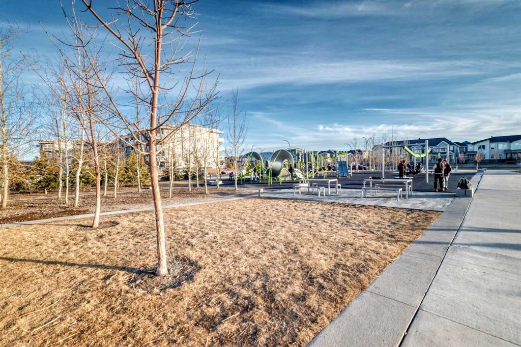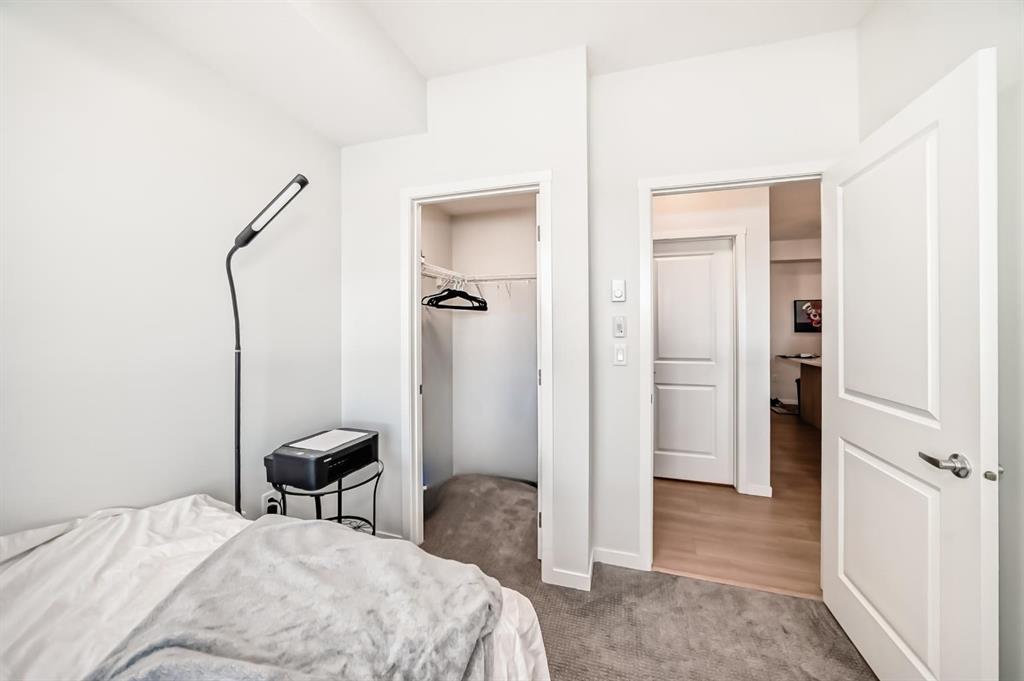 If you have been searching for a modern condo in NW Calgary that does not feel cookie-cutter, this is it. Located in Carrington, this TOP-FLOOR home gives you privacy, light, and a clean contemporary design. Built in 2022 by Cedarglen, this 860+ sqft condo was designed for real life. Not just photos. The kitchen is upgraded and finished with TWO-TONE CABINETS to the ceiling, GLASS-FRONT UPPERS, QUARTZ COUNTERS, a BUILT-IN OVEN and microwave, a cooktop with HOOD FAN and a CUSTOM BUILT-IN DINING area. It feels sleek, modern, and intentional, perfect for hosting. This 2 BED / 2 BATH layout offers separation and function. The primary bedroom has an ensuite with DOUBLE VANITY, walk-in shower and a massive WALK-IN CLOSET. The second bedroom has its own WALK-IN CLOSET too, and is adjacent to the guest bath. The huge LAUNDRY ROOM offers serious storage. You also get A/C, titled underground PARKING and a separate STORAGE LOCKER. No sweating in the summer. No scraping snow in winter. No clutter in your living space. TOP FLOOR means no one above you. More peace. More quiet. Nearby GREENWAY PARK offers playgrounds, a basketball court, a skate park, art installations, and access to the Rotary Mattamy Greenway trail system. In fact, there are about 65 acres of green space and connected pathways making it easy to stay active. The SHOPS OF CARRINGTON GREEN, with groceries, restaurants, and professional services, are literally at your doorstep. Quick routes to major roadways and future Green Line LRT expansion make commuting simple. Stop settling for average condos. This one checks all the boxes.