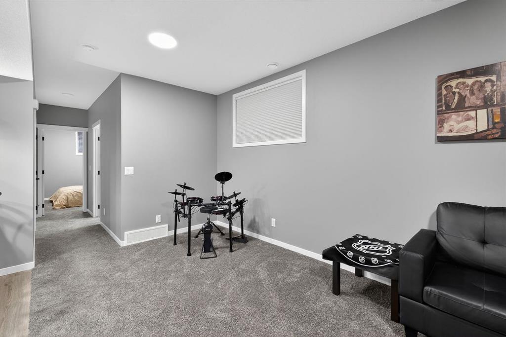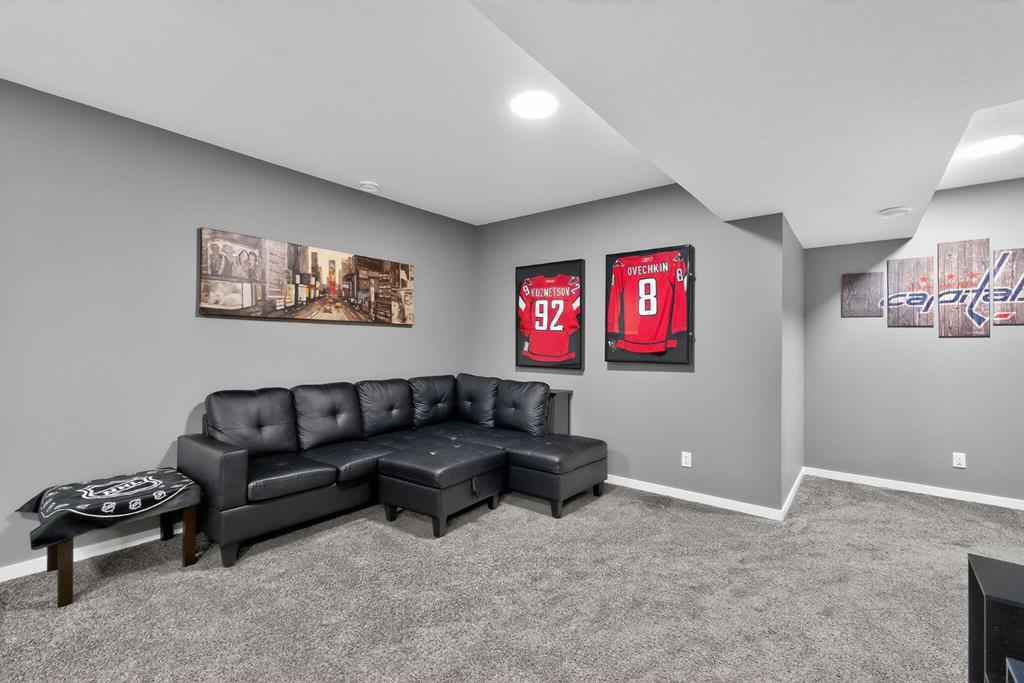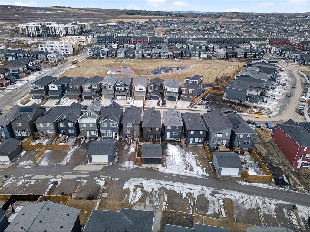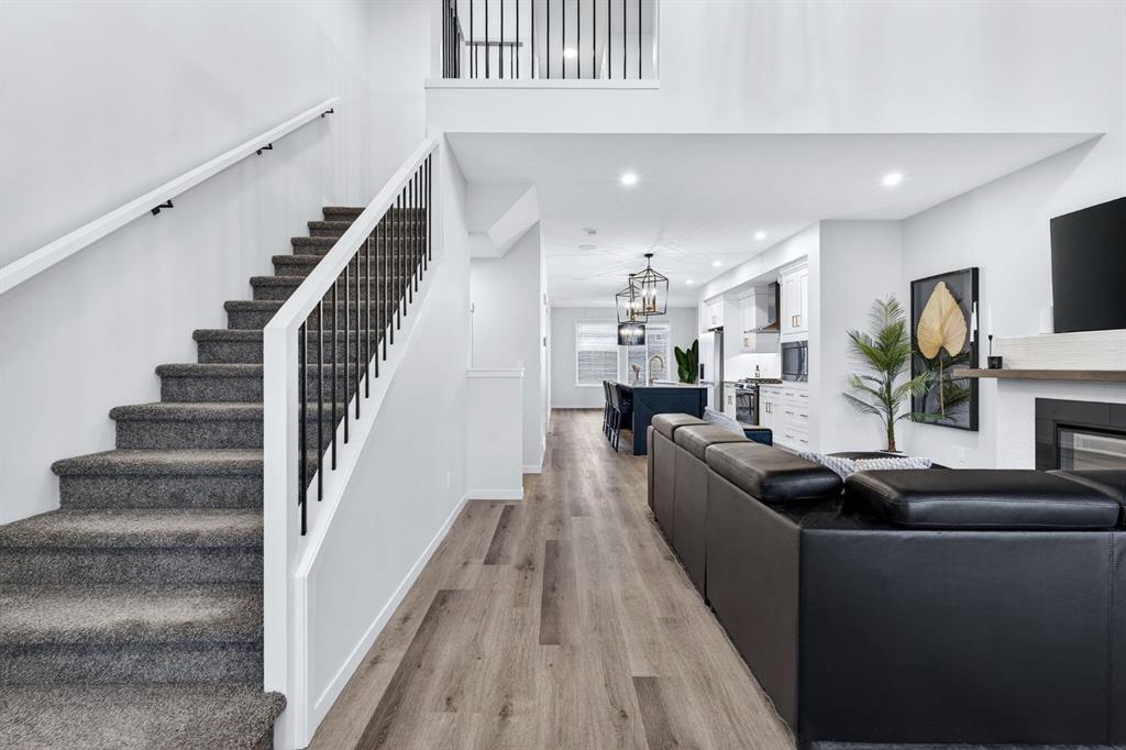 Welcome to this stunning 2 story home in the desirable community of Belmont, where elevated design, thoughtful upgrades, and an exceptional location come together seamlessly. Offering 1,669 sq ft above grade plus an additional 835 sq ft in the developed basement, this home delivers both style and substance. A detached double garage adds everyday convenience, while the layout has been carefully designed to maximize flow, comfort, and functionality across all three levels. From the moment you step inside, you’re greeted by soaring ceilings and an open-concept main living area that delivers an immediate wow factor. The living room is anchored by a striking modern fireplace and filled with natural light, creating a warm yet sophisticated space for relaxing or entertaining. At the heart of the home is the custom kitchen and coffee nook, truly the nucleus of the space. Featuring an oversized island with seating, sleek white cabinetry with soft-close drawers, quartz countertops, stainless steel appliances, and statement lighting, this kitchen is as beautiful as it is practical. Built-in ceiling speakers elevate the experience whether you’re cooking, hosting, or enjoying a quiet morning coffee. The adjacent dining area offers a clean, modern setting for everyday meals or special gatherings. The upper level continues to impress with a bright open loft, ideal for a home office or flex space. 2 generously sized bedrooms complete this level, including a serene primary retreat designed for rest and relaxation. The spa-inspired ensuite, upgraded with a premium spa package, showcases a deep soaker tub, glass-enclosed shower, elegant tilework, modern fixtures, and a sleek vanity. A walk-in closet with custom shelving completes the primary suite. The developed basement is where this home truly sets itself apart. Designed for entertaining and everyday enjoyment, this level features a spacious recreation area, a third bedroom, and an unforgettable custom $20,000 bar that steals the show. Finished with black tile, tinted mirrors, black quartz countertops, statement lighting, and matching custom finishes in the basement bathroom, this space delivers a true wow factor. Built-in speakers complete the experience, making it perfect for hosting friends, movie nights, or relaxing evenings at home. The backyard is ready for future enjoyment with a hot tub rough-in already in place, offering added flexibility for outdoor entertaining and relaxation. Ideally positioned on the edge of the city, this home offers quick access to both McLeod Trail and Deerfoot Trail, making commuting effortless in any direction, including an easy drive west toward the mountains. A new commercial plaza sits just one street to the east, while greenways, walking paths, and a playground are located one street to the west offering the perfect balance of convenience and lifestyle. This home is a rare blend of modern design, high-end upgrades, and thoughtful functionality for buyers seeking something truly special.