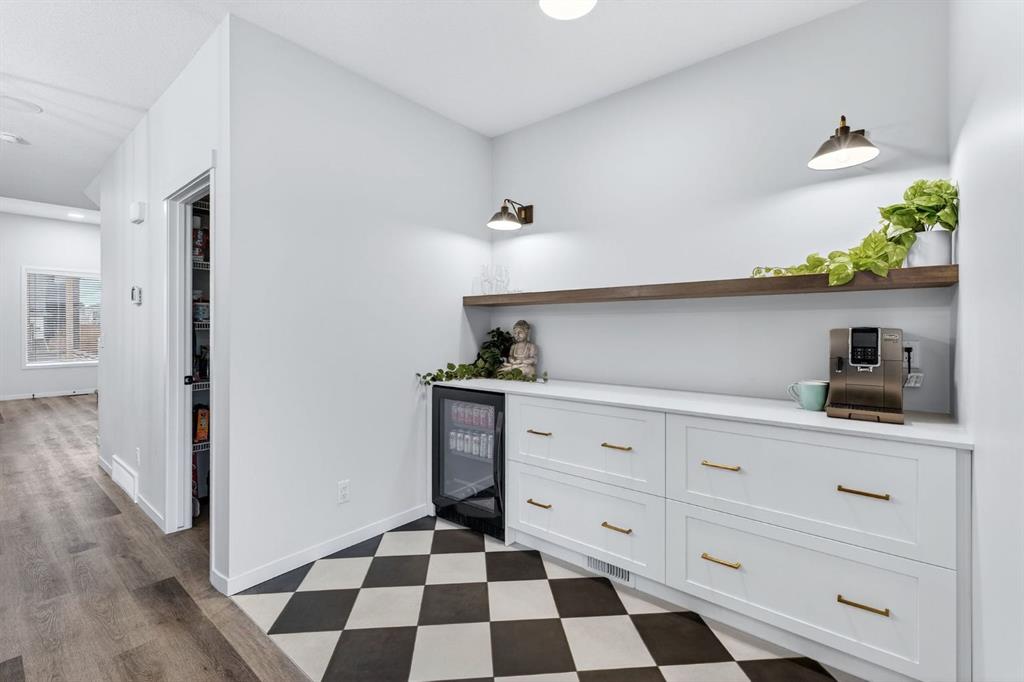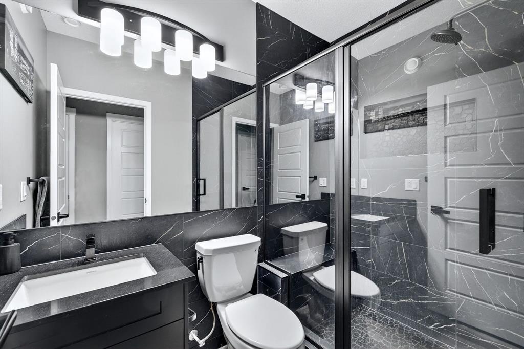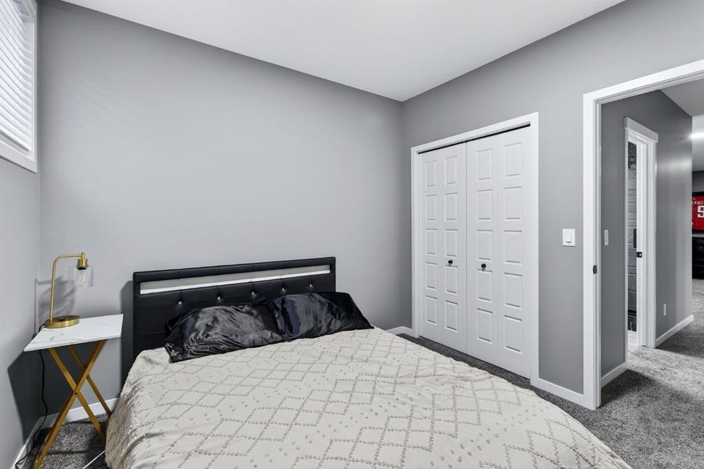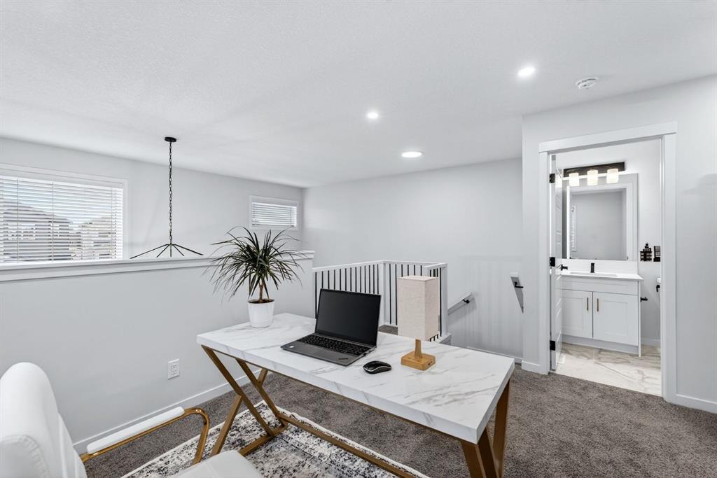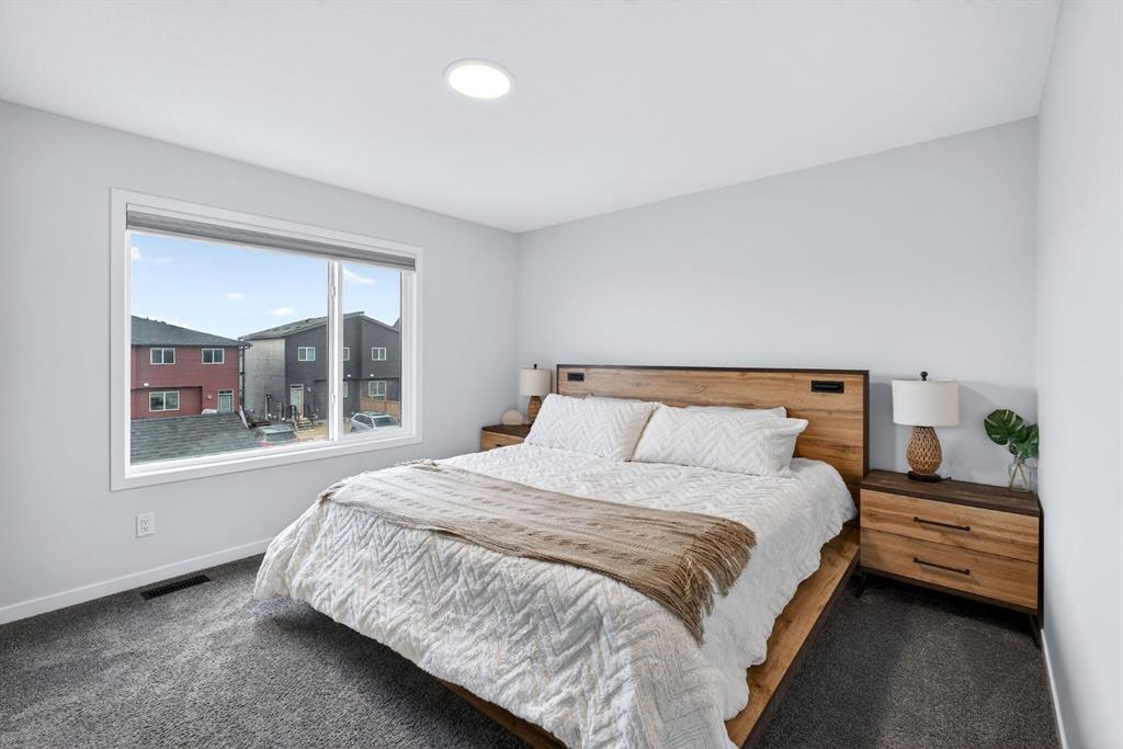 Welcome to this stunning 2 story home in the desirable community of Belmont, where elevated design, thoughtful upgrades, and an exceptional location come together seamlessly. Offering 1,669 sq ft above grade plus an additional 835 sq ft in the developed basement, this home delivers both style and substance. A detached double garage adds everyday convenience, while the layout has been carefully designed to maximize flow, comfort, and functionality across all three levels. From the moment you step inside, you’re greeted by soaring ceilings and an open-concept main living area that delivers an immediate wow factor. The living room is anchored by a striking modern fireplace and filled with natural light, creating a warm yet sophisticated space for relaxing or entertaining. At the heart of the home is the custom kitchen and coffee nook, truly the nucleus of the space. Featuring an oversized island with seating, sleek white cabinetry with soft-close drawers, quartz countertops, stainless steel appliances, and statement lighting, this kitchen is as beautiful as it is practical. Built-in ceiling speakers elevate the experience whether you’re cooking, hosting, or enjoying a quiet morning coffee. The adjacent dining area offers a clean, modern setting for everyday meals or special gatherings. The upper level continues to impress with a bright open loft, ideal for a home office or flex space. 2 generously sized bedrooms complete this level, including a serene primary retreat designed for rest and relaxation. The spa-inspired ensuite, upgraded with a premium spa package, showcases a deep soaker tub, glass-enclosed shower, elegant tilework, modern fixtures, and a sleek vanity. A walk-in closet with custom shelving completes the primary suite. The developed basement is where this home truly sets itself apart. Designed for entertaining and everyday enjoyment, this level features a spacious recreation area, a third bedroom, and an unforgettable custom $20,000 bar that steals the show. Finished with black tile, tinted mirrors, black quartz countertops, statement lighting, and matching custom finishes in the basement bathroom, this space delivers a true wow factor. Built-in speakers complete the experience, making it perfect for hosting friends, movie nights, or relaxing evenings at home. The backyard is ready for future enjoyment with a hot tub rough-in already in place, offering added flexibility for outdoor entertaining and relaxation. Ideally positioned on the edge of the city, this home offers quick access to both McLeod Trail and Deerfoot Trail, making commuting effortless in any direction, including an easy drive west toward the mountains. A new commercial plaza sits just one street to the east, while greenways, walking paths, and a playground are located one street to the west offering the perfect balance of convenience and lifestyle. This home is a rare blend of modern design, high-end upgrades, and thoughtful functionality for buyers seeking something truly special.