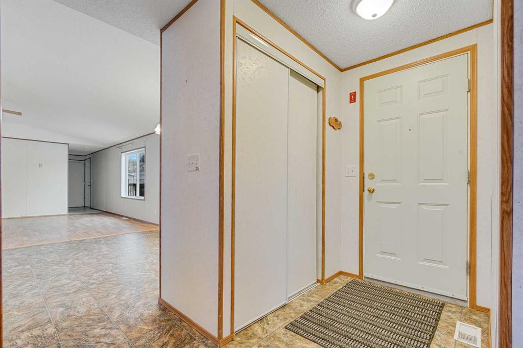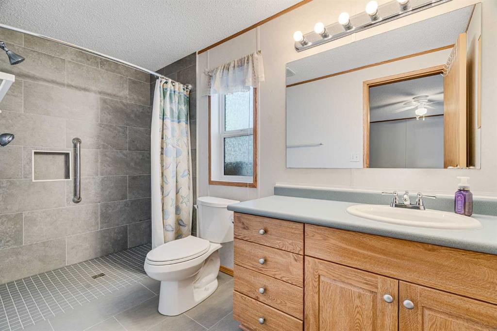 Rare opportunity to own a beautifully situated double-wide mobile home facing an Environmental Reserve and natural hillside, offering exceptional privacy and scenic views. This spacious home features vaulted ceilings, abundant cabinetry, and generous counter space—perfect for everyday living. A wheelchair-accessible lift at the front entrance provides added convenience and accessibility.