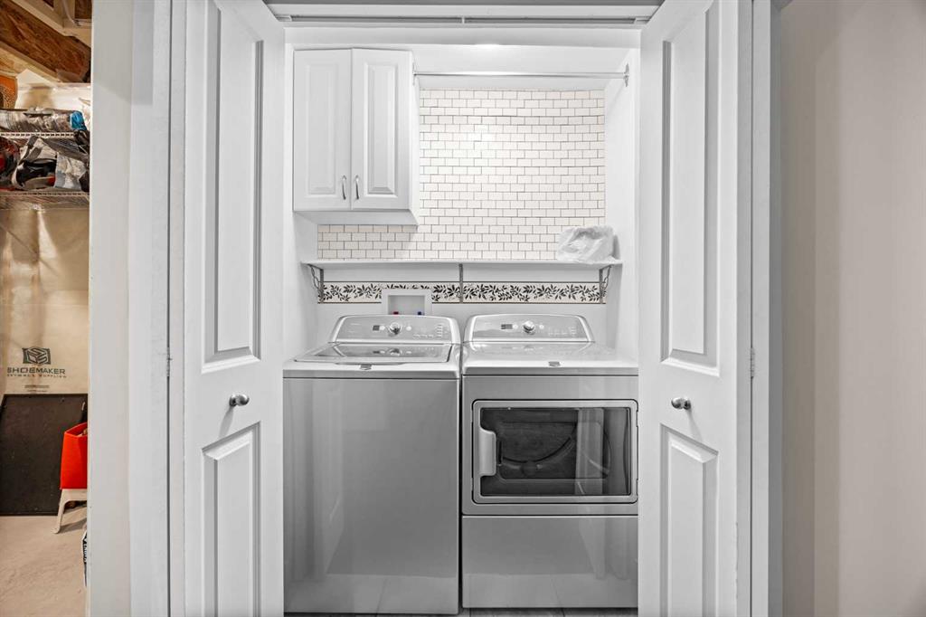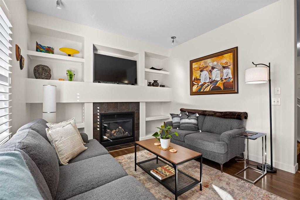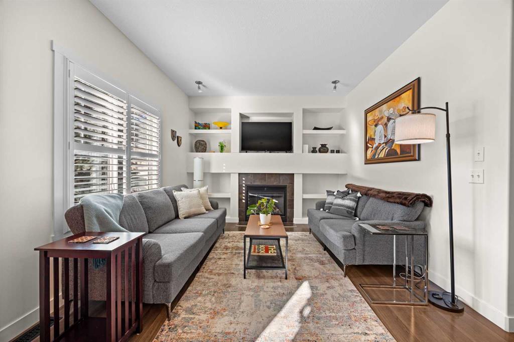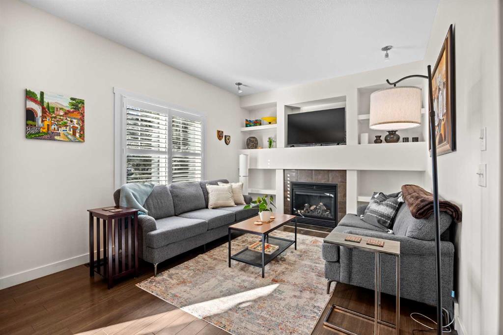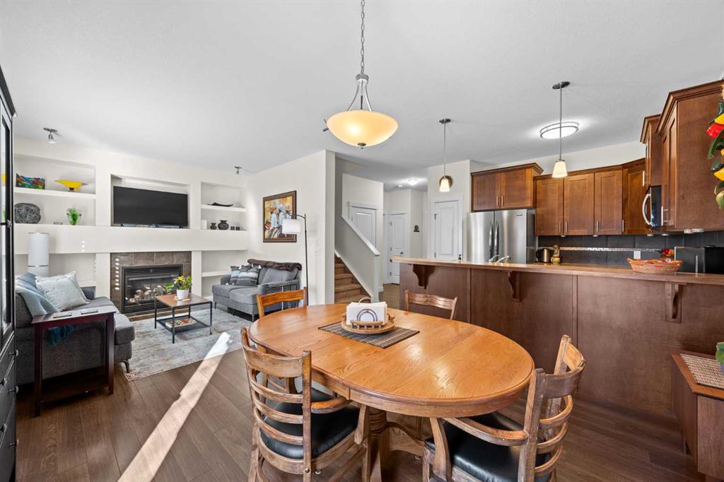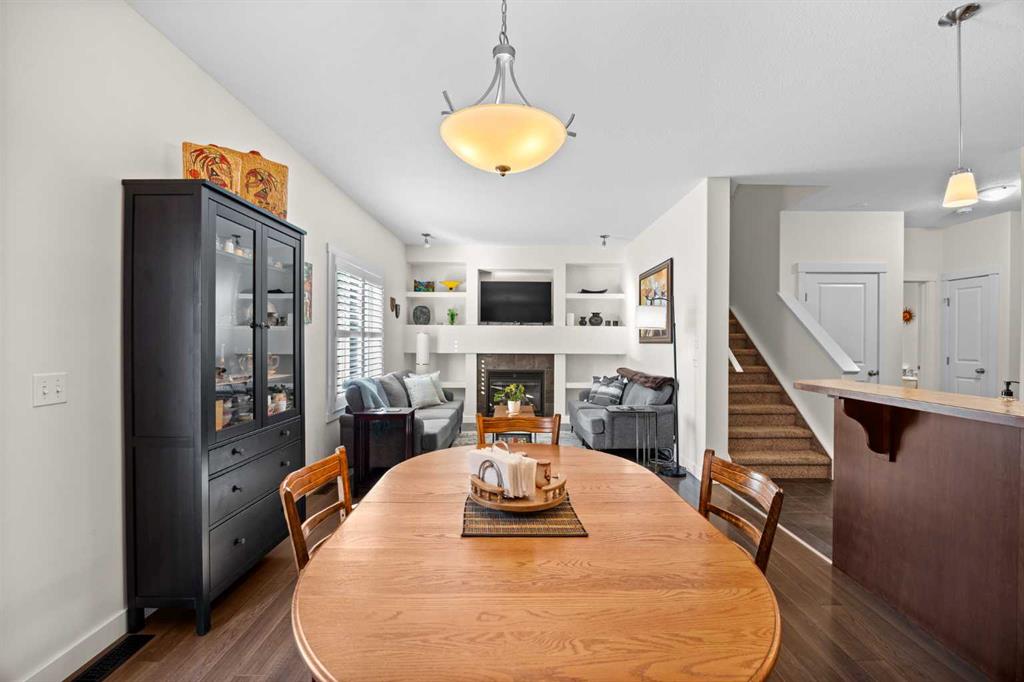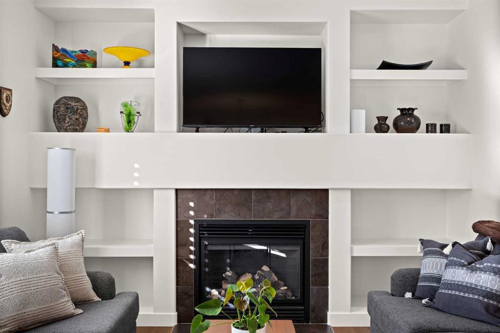 The main floor is bright, open, and built for real life. Durable laminate flooring, a warm and inviting living room with a GAS FIREPLACE, and CUSTOM BUILT-INS that make the space feel polished and functional. The dining area opens to your WEST-FACING BACK PATIO where you can soak up that AMAZING WEST SUN with nothing but GREEN SPACE behind you. And yes — there’s a GAS LINE for the BBQ.