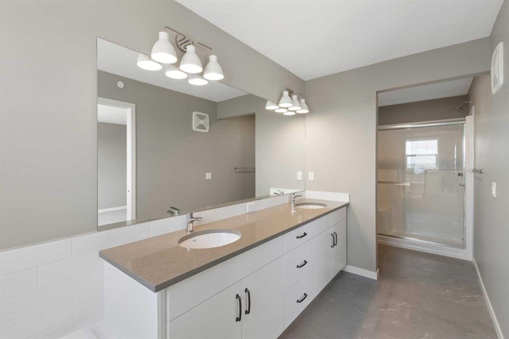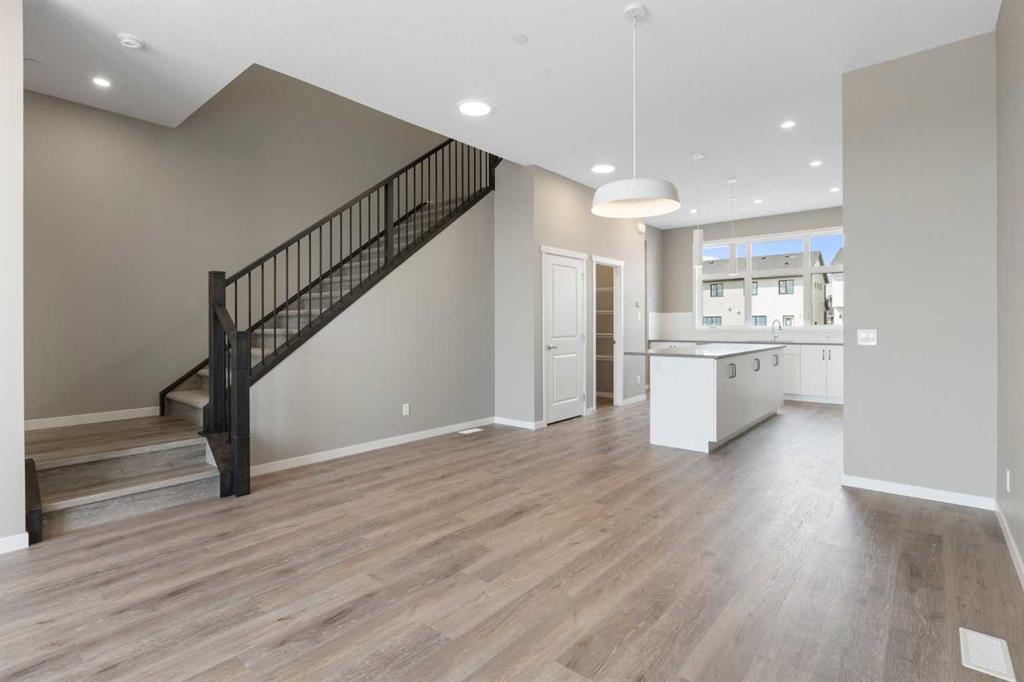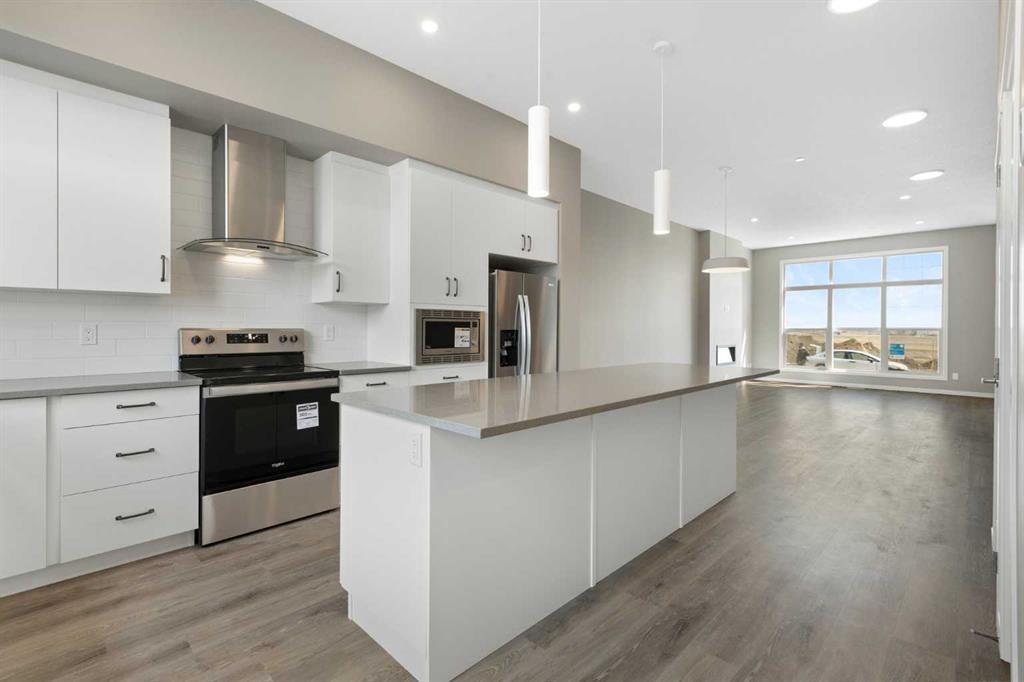 Welcome to this brand-new “Lyall” floor plan, a beautifully crafted home that blends modern style with functional design. From the moment you step inside, you’re greeted by soaring 10’ ceilings and warm luxury vinyl plank flooring that flows throughout the main level. At the front, a versatile flex room offers the perfect space for a home office, reading nook, or play area. Moving toward the back, the open-concept living space unfolds with a bright and inviting living room, complete with an elegant electric fireplace, an oversized dining area ideal for family gatherings, and a stunning kitchen that serves as the heart of the home. The kitchen is a true showpiece, featuring timeless white cabinetry extended to the ceiling, quartz countertops, a hammered white subway tile backsplash that wraps around the sleek range hoodfan, stainless steel appliances, and a spacious island—perfect for both everyday meals and entertaining. Upstairs, a central loft provides a flexible second living space and creates separation between the primary suite and the additional bedrooms. The staircase is highlighted with modern black spindle railing, adding a contemporary touch to the home’s design. The spacious primary retreat includes a walk-in closet and a spa-inspired 5-piece ensuite with dual sinks. Two more bedrooms, a full 4-piece bathroom, and a convenient upper laundry room complete this level. The fully finished basement adds incredible value with two additional bedrooms, a large rec room, and a 4-piece bathroom. The basement is roughed in for a wet bar and has extra laundry—making it an ideal setup for multi generational living, or space for your older children. Located in the growing southeast community of Hotchkiss, this home offers more than just a beautiful interior. Residents here enjoy a family-friendly setting with scenic pathways, green spaces, and quick access to major routes like Stoney Trail and Deerfoot. You’re also just minutes away from the amenities of Seton, including restaurants, shopping, the South Health Campus, and recreation options. This is your opportunity to own a brand-new, move-in ready home in one of Calgary’s up-and-coming communities—complete with a finished basement and high-end upgrades that make it truly stand out.