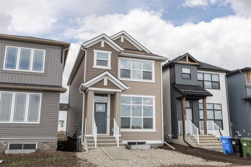 Welcome to this brand-new “Lyall” floor plan, a beautifully crafted home that blends modern style with functional design. From the moment you step inside, you’re greeted by soaring 10’ ceilings and warm luxury vinyl plank flooring that flows throughout the main level. At the front, a versatile flex room offers the perfect space for a home office, reading nook, or play area. Moving toward the back, the open-concept living space unfolds with a bright and inviting living room, complete with an elegant electric fireplace, an oversized dining area ideal for family gatherings, and a stunning kitchen that serves as the heart of the home. The kitchen is a true showpiece, featuring timeless white cabinetry extended to the ceiling, quartz countertops, a hammered white subway tile backsplash that wraps around the sleek range hoodfan, stainless steel appliances, and a spacious island—perfect for both everyday meals and entertaining. Upstairs, a central loft provides a flexible second living space and creates separation between the primary suite and the additional bedrooms. The staircase is highlighted with modern black spindle railing, adding a contemporary touch to the home’s design. The spacious primary retreat includes a walk-in closet and a spa-inspired 5-piece ensuite with dual sinks. Two more bedrooms, a full 4-piece bathroom, and a convenient upper laundry room complete this level. The unfinished basement adds incredible potential for future development. Located in the growing southeast community of Hotchkiss, this home offers more than just a beautiful interior. Residents here enjoy a family-friendly setting with scenic pathways, green spaces, and quick access to major routes like Stoney Trail and Deerfoot. You’re also just minutes away from the amenities of Seton, including restaurants, shopping, the South Health Campus, and recreation options. This is your opportunity to own a brand-new, move-in ready home in one of Calgary’s up-and-coming communities—complete with a finished basement and high-end upgrades that make it truly stand out.