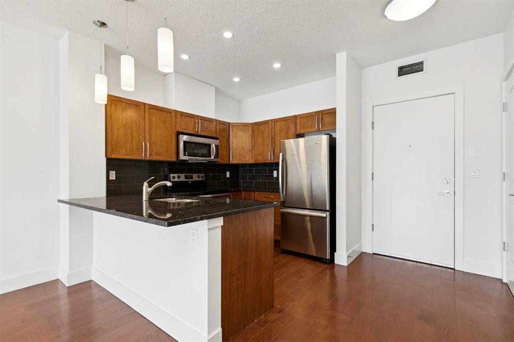 For those who seek an exceptional lifestyle! Welcome to Montgomery Place, where comfort meets convenience in one of Calgary’s most desirable communities. Living here means living within walking distance to robust inner-city amenities and several parks & recreation – the perfect blend of all Calgary’s best offerings. This bright 1 bed + den (optional 2nd bedroom) TOP FLOOR, SOUTH-FACING condo features 824 sqft of living space with clean lines and optimal function. The inviting open-plan living area features large windows, fresh white paint, & high ceilings – filling the space with warmth and light. The modern kitchen is both stylish and practical, with sleek black countertops, eat-up bar, and plenty of cabinetry to ensure everything has its place. Spend time outside on the sunny south-facing balcony with views of nearby Winsport. A versatile den awaits for your personalized touch – whether it’s a home office, second bedroom, home gym, or media/gaming space. The convenience of in-suite laundry adds to the overall comfort of the space. The underground titled parking ensures all-weather comfort, eliminating the need to warm up/cool down the car during extreme temperatures. Pets allowed with restrictions and subject to board approval. Located in Montgomery, known for a community life rich with amenities and close proximity to some of Calgary’s most well known parks and recreation. Enjoy expansive Shouldice Park, Arena, Aquatic Centre, Athletic Park, & Accessible Park, the Bow River Pathway system, Bowmont Park, Edworthy Park, community garden plots, Montgomery Bike Park, to name just a few. Steps to several local restaurants & coffee shops, countless retail stores, fitness centers, diverse professional services, and both big box & specialty grocery stores. Quick access to several major roadways and nearby transit makes commuting seamless. Within 10 minutes to downtown, Market Mall, University of Calgary, and both the Children’s & Foothills Hospital. Some photos have been virtually staged. If convenience, connectivity, and lifestyle top your list, this home delivers it all!
