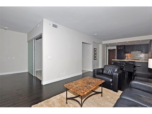 Welcome to one of the hottest locations in Calgary! Steps to Princess Island river path system, restaurants, shops and downtown. Executive style and top quality finishes in this 690 sqft, one bedroom plus den condo. This contemporary condo has features that will thrill the most discriminating buyer. 9′ flat painted ceilings, gourmet kitchen with upgraded stainless steel appliances including gas cooktop, built-in oven and sub zero fridge with freezer drawers, granite countertops, new vinyl plank floors, sleek gas fireplace and fresh paint throughout. Flexible opaque garage door walls open up views and create a den or to expand the master bedroom. Lots of options here! This 4th floor condo looks east with a view of the river and Centre Street bridge. Building amenities include a gym with yoga studio, steam room & hot tub, games room & private movie theatre. 24 hour concierge service is available.