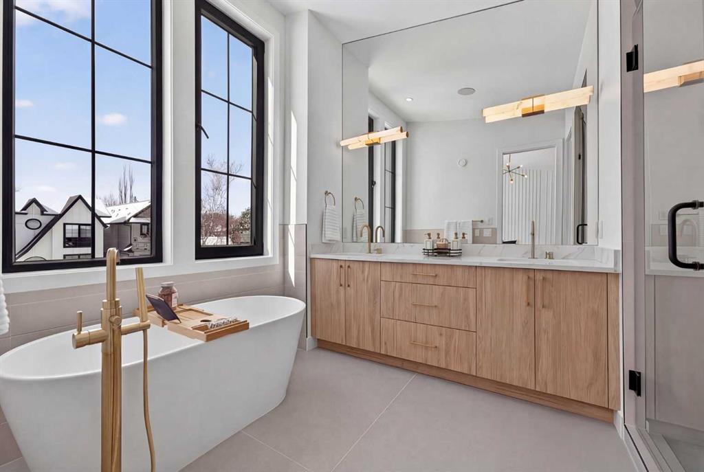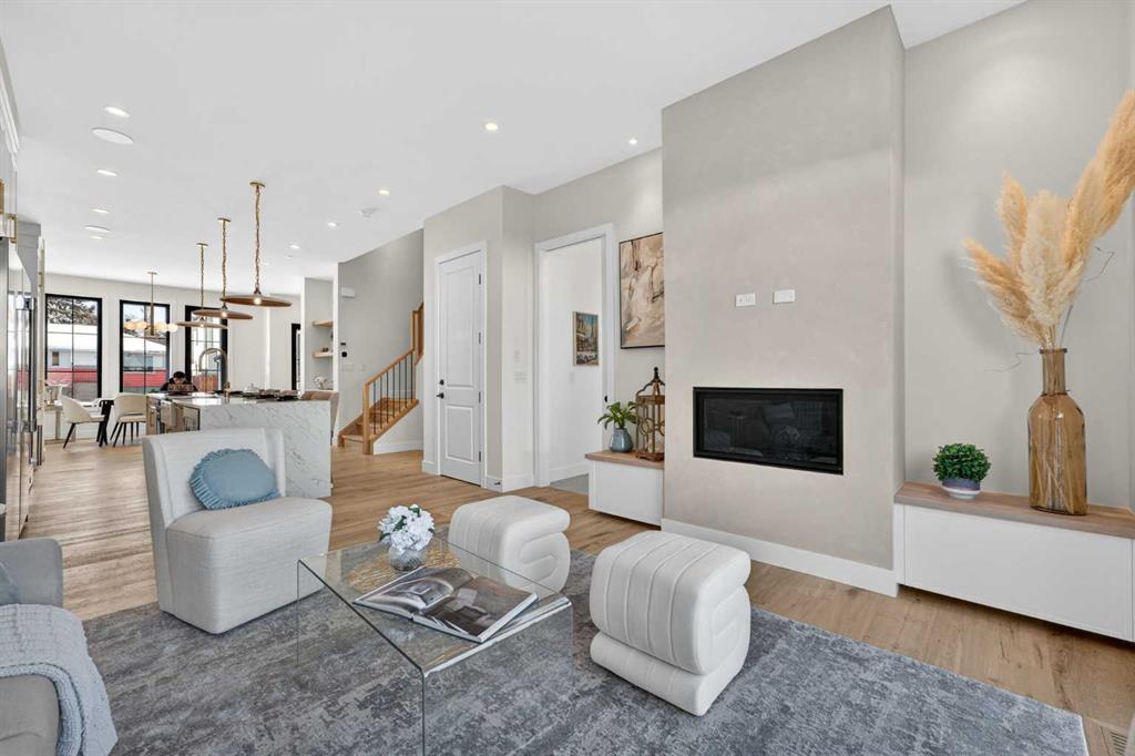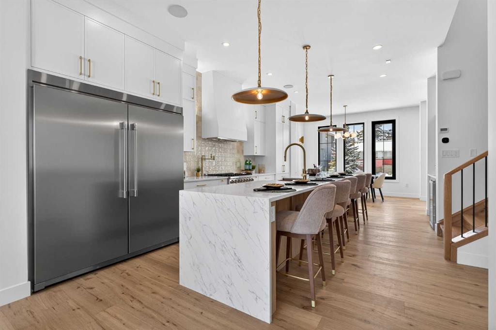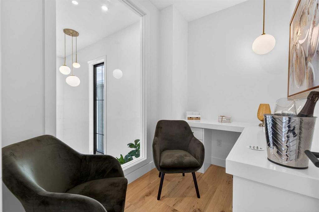 Nestled on one of Spruce Cliff’s most coveted streets, 416 36 Street SW stands as a testament to modern luxury and thoughtful design. Imagine a family envisioning their future, or a couple with growing needs, pulling up to their brand-new dream home. This isn’t just a house; it’s the backdrop for their next chapter. Stepping inside, the 10-foot ceilings on the main floor immediately captivate. Sunlight streams through unique European-style windows, which elegantly tilt or swing open, inviting the gentle breeze. The chef’s kitchen is a true culinary sanctuary, featuring a premium stainless steel appliance package with a 6-burner gas range and a 60-inch fridge/freezer, a convenient pot filler, and ample prep space on the stunning 13-foot island with its farmhouse sink and waterfall quartz edge. Sleek painted thin-profile shaker cabinets and a dedicated coffee station add to the thoughtful design. Warm hardwood floors flow seamlessly, guiding them through the open-concept space. The dining area, with its stylish feature wall, promises intimate dinners. In the living room, the fully Venetian plastered gas fireplace beckons cozy evenings, while patio doors open onto a spacious composite deck, engineered for no maintenance and long-lasting durability, complete with a gas connection for BBQs. A clever secret, a hidden door, conceals the chic two-piece bathroom. As they ascend the hardwood staircase, the second floor unfolds into a haven of comfort. The large primary bedroom, a serene retreat, boasts a captivating feature wall, vaulted ceilings and a spa-like five-piece ensuite. The two additional bedrooms offer ample space for children or guests, serviced by a beautifully appointed four-piece bathroom. A dedicated office, complete with a built-in desk, provides a quiet space to focus. Hardwood floors continue throughout this level. But the story doesn’t end there. Downstairs, a fully independent, two-bedroom legal suite, with durable LVP flooring, presents a world of possibilities. Perhaps for visiting family, or as a smart investment, offering the flexibility of long or short-term rentals. Beyond the immediate charm, this home offers hidden strengths and smart features. The party wall, built to code with upgraded insulation, an extra layer of 5/8″ drywall, and resilient channels (Sound Bar), ensures unparalleled soundproofing. The thoughtful pre-wiring for A/C, built-in speakers, central vacuum, and Cat6 in the office and bedrooms speaks to a home designed for convenience and the future. 416 36 Street SW isn’t just a new build; it’s an invitation to a lifestyle. It’s the beginning of countless memories and the quiet comfort of knowing you’ve found your forever home on a street where quality and community converge. (Pictures/Layouts https://listedmedia.aryeo.com/sites/rxozypwb/unbranded)