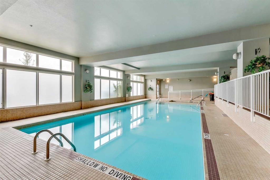 Additional highlights include a titled heated underground parking stall near the elevator and a separate assigned storage unit. Residents enjoy resort-style amenities including a fitness facility, indoor pool and hot tub, movie theatre, games room, craft room, woodworking shop, wine room, libraries, guest suites, social spaces, banquet facilities, and an on-site car wash bay — supporting an active, maintenance-free lifestyle.