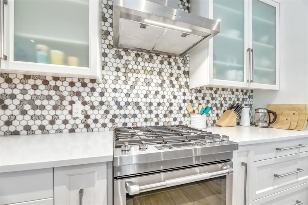 Every detail has been carefully curated, from the designer lighting and custom tile work to a tailored built in with mirror, a timeless neutral palette, and a main floor office. Oversized windows and 9’ ceilings on all three levels flood the home with natural light, enhancing the open, modern layout that balances style with everyday functionality.