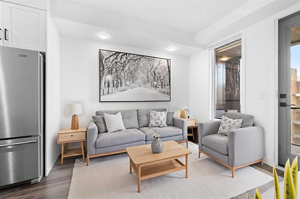 Welcome to this stylish 1-bedroom condo located in the vibrant and highly desirable University District, offering modern living in one of the city’s most dynamic and walkable communities. Situated in the sought-after August building, this home combines contemporary design, thoughtful functionality, and exceptional location. The open-concept layout is highlighted by modern finishes and clean architectural lines, creating a bright and inviting living space. The well-appointed kitchen features sleek cabinetry, quality appliances, and ample counter space, flowing seamlessly into the living and dining areas—perfect for both everyday living and entertaining. Large windows bring in abundant natural light and lead out to the oversized deck, an ideal spot to relax, host guests, or enjoy outdoor living in an urban setting. The spacious bedroom offers a comfortable retreat with a generous walk in closet, while the stylish bathroom complements the home’s modern aesthetic. Added conveniences include in-suite laundry and in-suite storage, providing practicality without compromising design. This unit also comes with a titled underground parking stall, secured underground storage locker, and the peace of mind that comes with a well-maintained, secure building. The August building is known for its contemporary style and prime location within University District. Enjoy unparalleled access to restaurants, cafés, grocery stores, HOT YOGA (my first choice!), fitness studios, parks, and transit, all just steps from your door, along with proximity to the University of Calgary, Foothills Medical Centre, and Alberta Children’s Hospital. The Bow River pathway system is a short walk from the University District. And whether you’re a professional, student, or investor, this beautifully designed condo offers a low-maintenance lifestyle in one of the city’s most exciting communities.