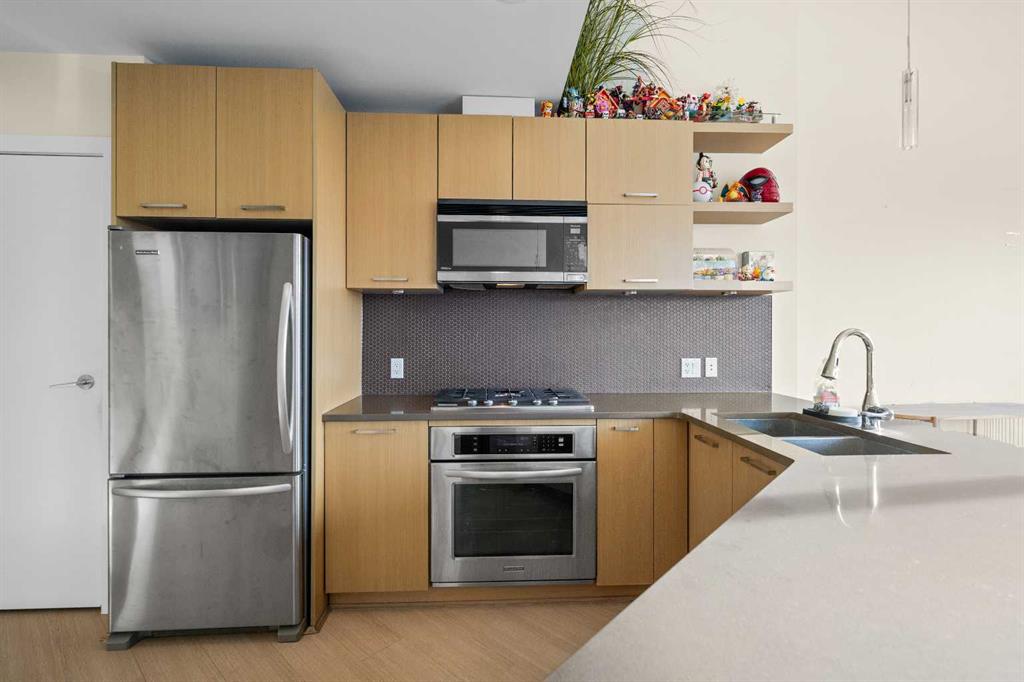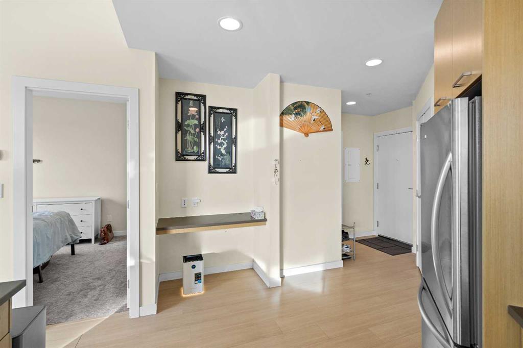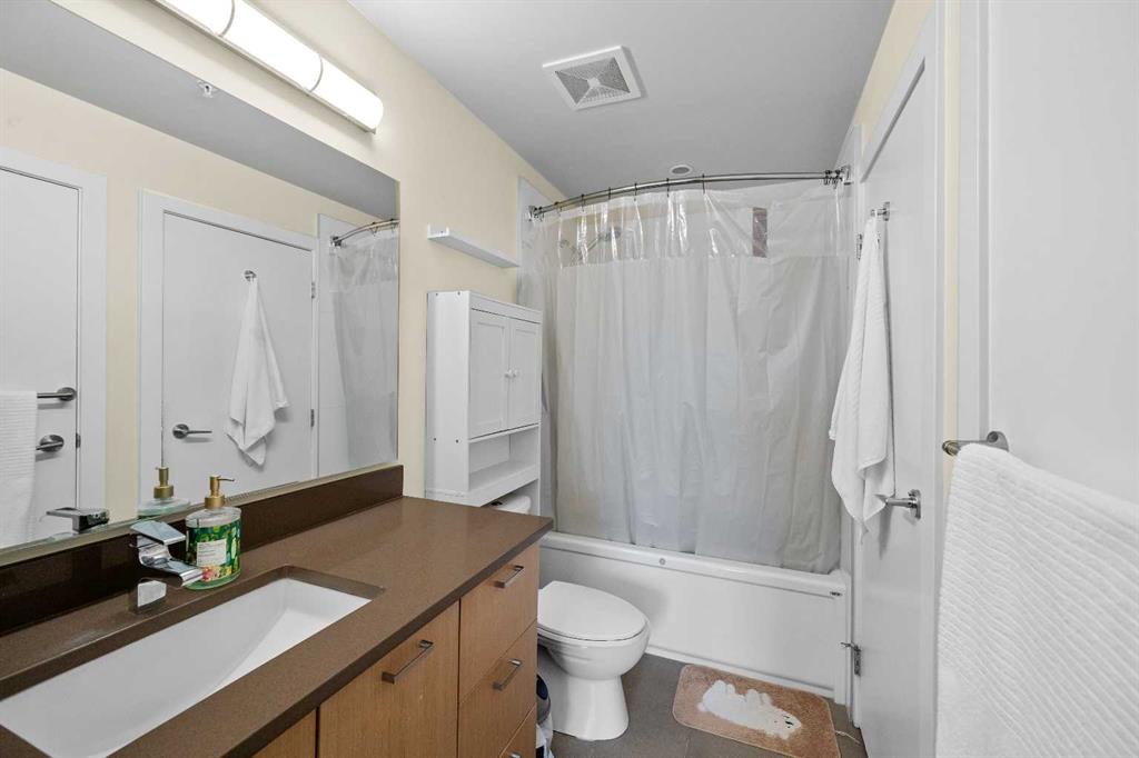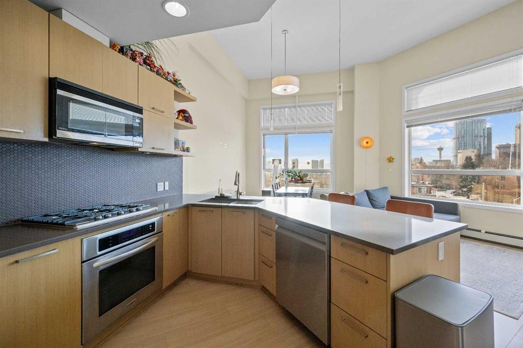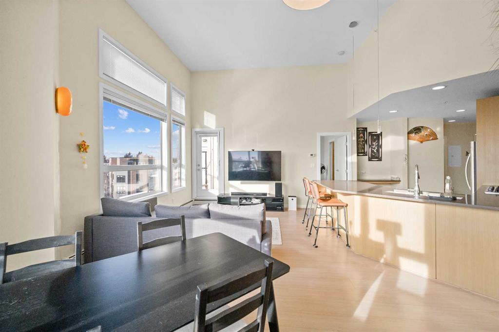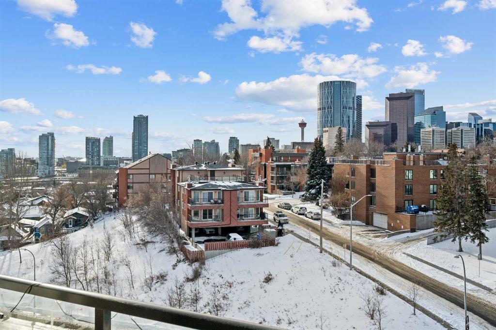 | MOTIVATED SELLER | 2 TITLED PARKING SPOTS SIDE BE SIDE | FURNITURES INCLUDES DINING TABLE SET, LIVING ROOM COUCH, TV WALL MOUNT, PORTABLE A/C, WASHROOM STORAGE CABINET, & DINING ROOM SHELF | 2024 DISHWASHER & 2024 WASHER & DRYER | Perched atop the hill between Bridgeland and Renfrew, this southwest-facing penthouse offers sweeping downtown city views through dramatic 13 foot ceilings. A rare highlight, the home includes two titled parking stalls, an exceptional feature for the building. Meticulously maintained, the unit showcases stainless steel appliances, elegant quartz countertops, full tub to ceiling tile in the bathroom, and 2023 carpet in both the bedroom and walk through closet.