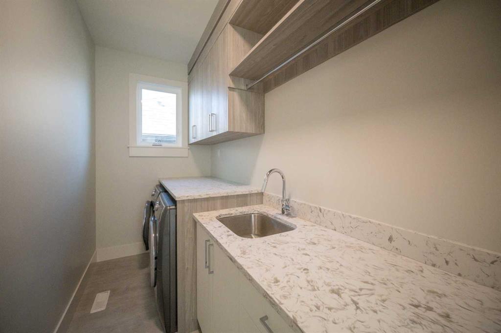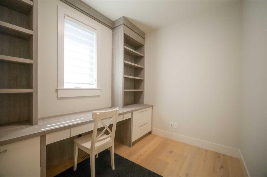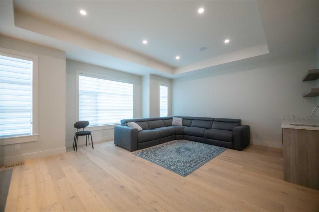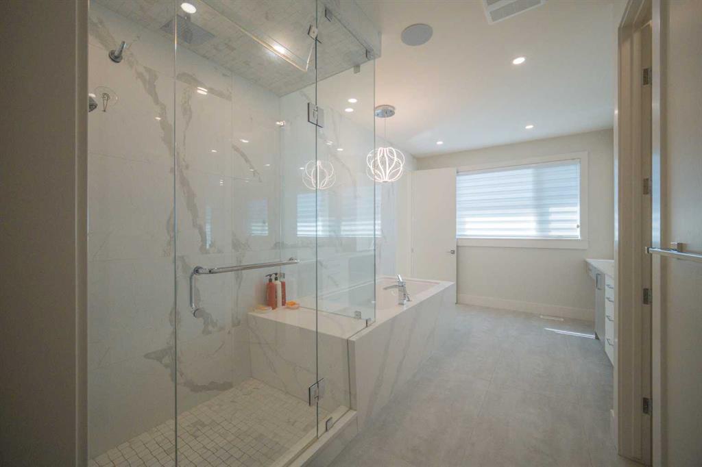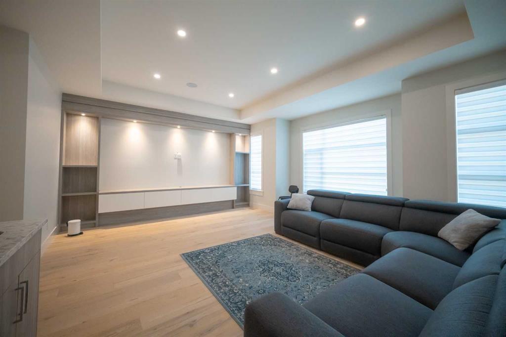 Welcome to this exquisite residence in the highly desirable inner-city community of Winston Heights. Situated on a generous 36.5′ x 152′ lot, this upscale executive home showcases exceptional craftsmanship and a thoughtfully designed floor plan that spans over 4,300 square feet of luxurious living space, enhanced by soaring 10-foot ceilings. From the moment you enter, you are welcomed by elegant white oak plank hardwood flooring that flows seamlessly throughout the entire home, including the staircase. The stylish chef’s kitchen is a true centerpiece, featuring a large central island, contemporary cabinetry, and High end JennAir stainless-steel appliances. A bright dining nook, framed by two large windows and a chic chandelier, overlooks the landscaped backyard. The spacious living room boasts an elongated gas fireplace with quartz stone surround, flanked by custom built-ins, and oversized sliding patio doors leading to the sunny rear deck—perfect for both entertaining and relaxing. A well-appointed mudroom on the main floor includes a large closet and abundant shelving, offering practical storage solutions for everyday living. Upstairs, the second level features a generous primary suite complete with 9-foot ceiling, a walk-in closet and a spa-inspired 5-piece ensuite that includes double sinks, a luxurious soaker tub, and an oversized steam/rain shower with a bench and 10mm glass enclosure. Two additional bedrooms, a bonus room, a sleek 3-piece bathroom, a dedicated office, and a separate laundry room add both comfort and functionality to this level. The fully developed legal basement suite, enhanced with in-floor heating, offers even more living space and versatility. It includes a spacious entertainment area with a fully equipped kitchen, two additional bedrooms, and a beautifully designed 3-piece bathroom—ideal for extended family or rental opportunities. Step outside to the beautifully landscaped backyard—an ideal setting for gatherings with family and friends. This home is loaded with premium upgrades, including triple-pane windows, basement in-floor heating, an oversized double garage with a 9-foot high door (lift-ready), custom built-ins, solid core doors, built-in ceiling speakers, flat-painted ceilings, programmable Lutron lighting, extra-wide baseboards and trim, and so much more. This is a truly exceptional modern home in one of Calgary’s most sought-after inner-city locations. Book your private showing today!