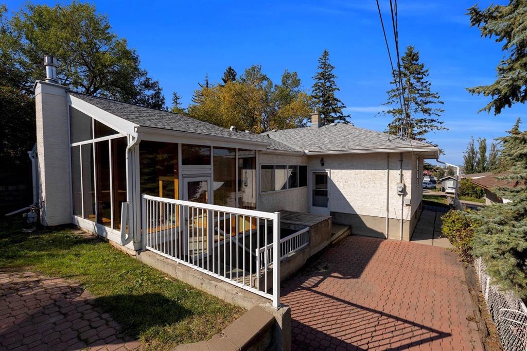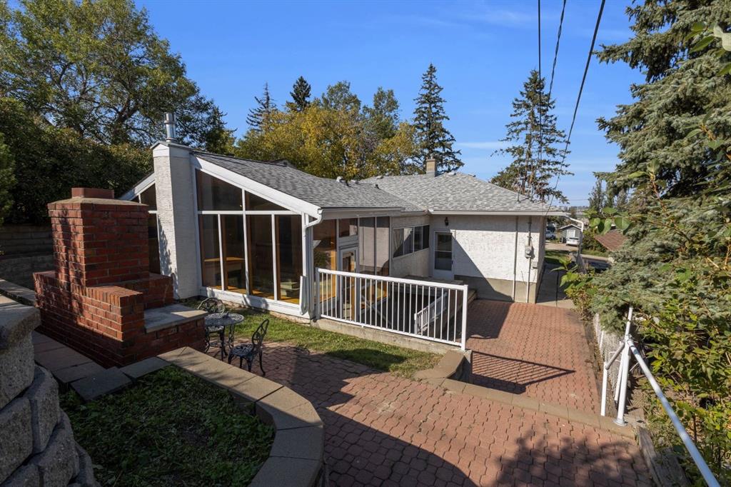 *Price has improved for quick sale* This charming BUNGALOW is brimming with potential. Situated on a 50’x115 lot with RC-G zoning and located in the highly desirable community of Winston Heights. This could be a holding property and future build, or renovate and move right in. Offering over 2,500 square feet of living space with 5 BEDROOMS and 3 FULL BATHROOMS across two levels, making it ideal for families or those needing extra space. MAIN LEVEL features 3 bedrooms and 2 full bathrooms, and boasts a large, functional kitchen that opens into a stunning sun room addition, highlighted by handcrafted cedar woodwork and a striking three-sided gas fireplace. The home retains original hardwood flooring, built-in features, and large windows that fill the space with natural light. BASEMENT is accessible via a separate entrance at the back of the house, includes TWO BEDROOMS—note that these do not have egress windows— FULL BATHROOM and a large recreation room, offering the potential for a suite (with city approval). Exterior stairs at the back of the house lead to a large storage room. The outdoor space is both beautiful and functional, featuring a south and east facing backyard that features a stunning brick outdoor fireplace, interlocking stone work and retaining wall. There is an unpaved parking pad and is large enough for two vehicles. Let’s not forget curb appeal with its thoughtfully designed stonework, and mature trees and landscaped yard. LOCATION. Close to schools, shopping, transit, off leash dog park, and The Winston Golf Club. This home is just minutes from downtown, with easy access to major routes like Deerfoot Trail, TransCanada Highway, and Edmonton Trail. If you are looking for timeless charm with exciting potential please call your REALTOR today to view this home. Don’t miss the virtual tour and floor plans to explore this wonderful property.
