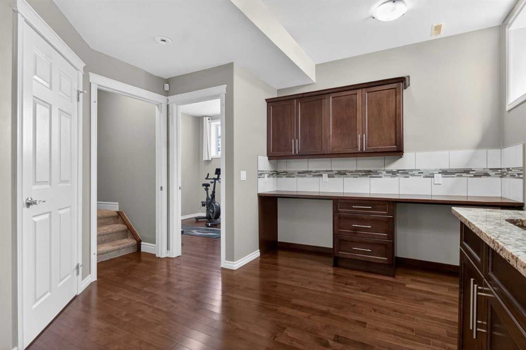 The sophistication continues in the fully developed basement, an entertainer’s dream upgraded with extensive custom cabinetry. Whether you need a professional dual-workspace station for remote work or a sophisticated wet bar with integrated wine storage, this level delivers. You’ll find specialized cabinetry for holiday servingware and kitchen overflow, ensuring everything has its place. This lower level also hosts a cozy designated movie-watching area, a fourth large bedroom, and a full bathroom. With a location that balances peaceful residential living with rapid access to downtown, parks, and major thoroughfares, this home is a rare find for the discerning buyer seeking quality over trend.