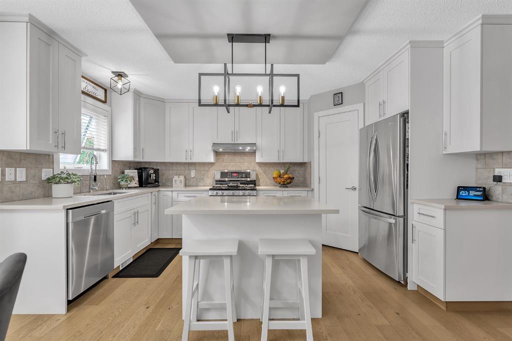 Experience the seamless flow of a bright, open floor plan designed for both daily life and effortless entertaining. Stunning new engineered flooring runs throughout, complemented by updated baseboards and modern doors. The heart of the home is a chef-inspired kitchen featuring sleek new cabinetry, durable quartz countertops, and a premium undermount sink—all highlighted by updated designer lighting.