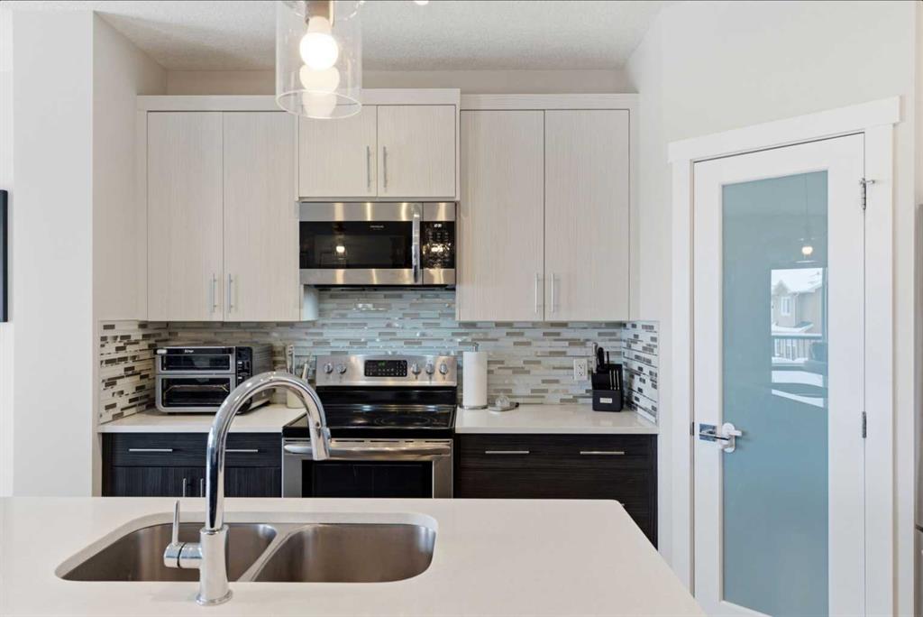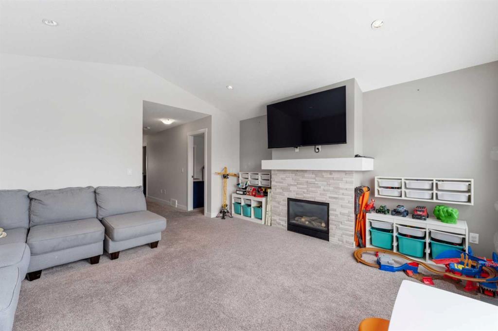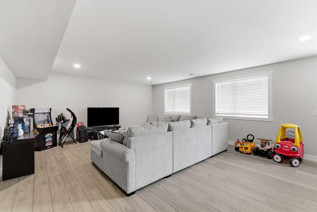This Stunning family home in the community of Bayview in Airdrie has over 2,700 sq. ft. of fully finished living space. The fully developed basement with a walk-out has sound dampening drywall and insulated for peace and quiet and is plumbed for a kitchen with a rental possibility. Thoughtfully upgraded throughout, the home features Central Air Conditioning, an impressive kitchen with extended-height cabinetry and Silestone quartz counters, opening to a bright dining nook with access to a large rear deck. The spacious great room is anchored by a quartz-clad built-in entertainment unit, enhanced with recessed lighting for a warm, modern feel and a practical main-floor mudroom/laundry area includes a generous storage closet, to round out the main floor. Upstairs, a well-lit bonus room with vaulted ceilings and pot lights creates an inviting central space. Two large bedrooms and a 4-piece main bath occupy the front of the upper level, while the rear is dedicated to the primary suite. The primary bedroom features an expansive walk-in closet and a bright 5-piece ensuite complete with a soaker tub and separate shower. The newly developed walk-out basement adds exceptional functionality, offering the home’s fourth bathroom, a convenient office/den, and a bright recreation room with large windows and a garden door leading to a covered patio and the rear yard. With a fabulous location close to school, shops and outdoor activities, what more could you ask for in your next home.