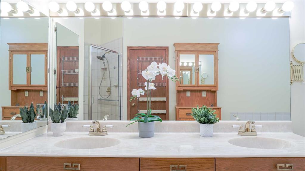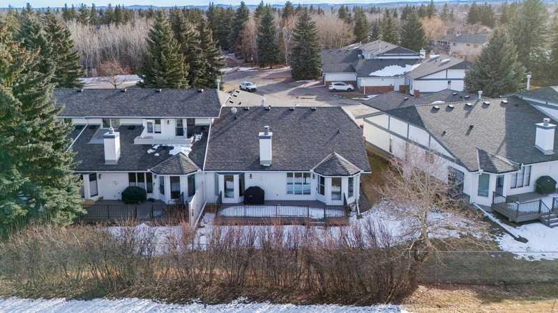 Look no further than this spacious Bungalow Villa backing directly onto Canyon Meadows Golf Course. If you are looking for a maintenance-free lifestyle with the ability to lock and leave, located in a private and serene cul-de-sac, this is the place for you! The well-run complex is nicely kept and fully landscaped with mature trees. When you enter the front door of the home, you will appreciate the soaring vaulted ceilings and abundance of natural light. The main floor features a private office, formal dining area, open kitchen with breakfast nook, all leading to the living room with corner gas fireplace. The main floor primary bedroom has a 5 piece ensuite with soaker tub, separate stand up shower, dual vanity and skylight for extra sunlight. There is also an oversized walk-in closet. The main floor also has a second bedroom, 4 piece bathroom and the convenience of main floor laundry room. The mudroom leads to an attached Double Car Garage. The lower level is an entertainer and sportsman’s delight with rec room, bar, gorgeous pool table and dart board that are included. There is a third bedroom (non-egress window). Basement bathroom is awaiting your personal touch. The property has a new, expansive composite Deck in the backyard, complete with BBQ gas hookup. It is the perfect location to enjoy morning coffee or afternoon happy hour overlooking the golf course. Conveniently located with access to both nature and amenities – close to Fish Creek Park for walking, biking or fishing, as well as a shopping center, transit and easy access to major roadways like Stoney Trail and Anderson Rd. This is an ideal home for someone seeking the ease of bungalow living with no snow shoveling or lawn care worries! Enjoy the peace and tranquility of this beautifully located property.