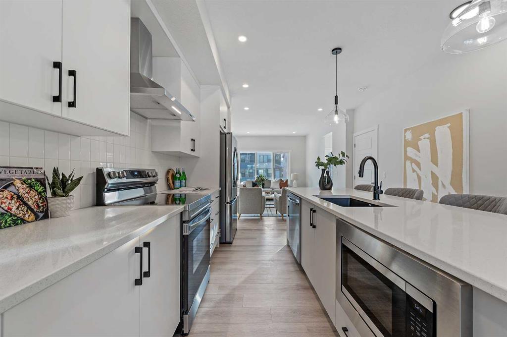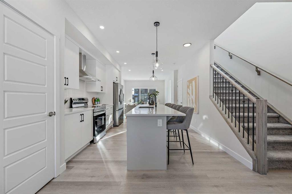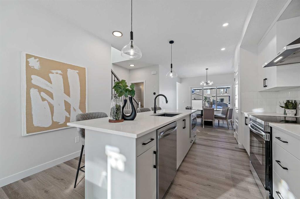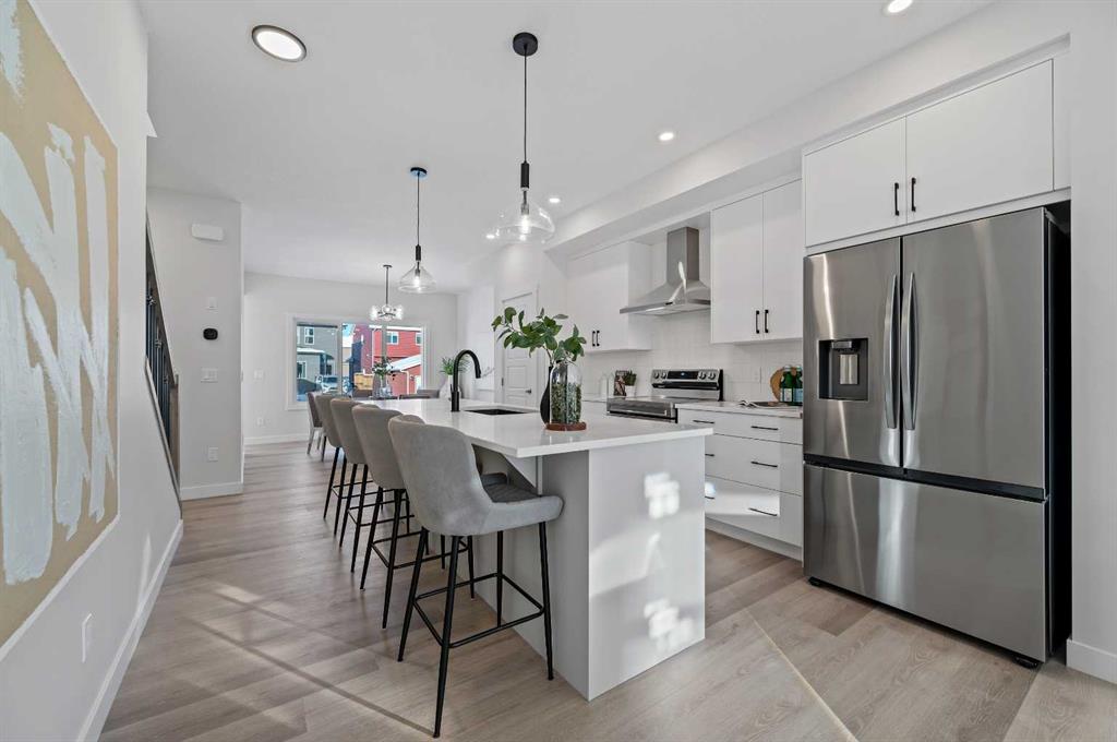 Welcome to this beautifully appointed, brand-new 3-bedroom, 2.5-bathroom duplex in the highly sought-after community of Fireside. Step inside to over 1600 sq. ft. of living space with an open-concept main floor. Large windows flood the space with natural light. The kitchen and living areas flow seamlessly, making it easy to entertain and enjoy everyday living. The kitchen offers ample storage, two-tone cabinetry in warm and cool colours, eye-catching black hardware and lighting, white quartz countertops, a spacious kitchen island and sleek stainless steel appliances. Head upstairs to a spacious primary suite with a 5-piece ensuite featuring an oversized shower and dual sinks. A walk-in closet completes the primary bedroom, making for a comfortable retreat. Two additional bedrooms, a full bathroom with a tub, and laundry complete the living levels. The unfinished basement with side entrance access and 9-foot ceilings offers endless potential to create extra living space to suit your needs. The backyard is a black canvas for you to landscape as you wish, and you can build the dream garage you have always wanted! With its quality finishes, smart layout, and unbeatable location, this Fireside duplex will be a great place to call home. Photos are representative and are of a previously built Felix model. Please see “mood board” in photos for colours and selections in this home.