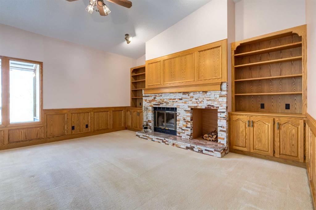 A true gem! Sitting in one of the best pockets in Hawkwood, this custom built, one owner home, is looking for a new family to make it their own. As you pull into the driveway, you will be impressed w/the great curb appeal w/stucco exterior and stone accents plus a clay tile roof. Walking in the front door, you are greeted by a large foyer that leads into a bright and inviting living room featuring a lovely turret window that fills the space w/natural light. A spacious formal dining area is the perfect space to host all your big holiday dinners. W/12′ vaulted ceilings, the space feels grand. The well-designed kitchen offers plenty of oak cabinetry incl. a wall pantry w/ pull out drawers to keep you organized. The island houses the electric cooktop plus more storage and extra counter space. A cozy breakfast nook is open to both the sunroom and the family room. The all-season sunroom will be a great addition for those green thumbs w/hot water heating, newer glass panels on the ceiling and automatic Hunter Douglas blinds so you can control the sun. The family room is where you will want to spend your time with a cozy wood burning fireplace surrounded by oak built-ins. The main floor also features a spacious primary retreat w/access to the deck, along w/a 5-ensuite offering double sinks, a large soaker tub, and a walk-in shower. A second bedroom, a four-piece bathroom, and an huge laundry/storage room w/built-in cabinetry and a utility sink add to the function of the home. W/beautiful NW exposure, you will enjoy the summer nights out on the very generous balcony (42’ x 9’). Updated w/composite deck boards, glass railing and stairs leading down to the backyard so you can move around with ease. There is a gas line for those avid BBQ’ers plus lots of covered area when the weather isn’t cooperating. Downstairs, the bright walkout basement w/in floor heat offers a large rec area w/a second wood burning fireplace and a huge a wet bar for those who like to entertain. Two additional bedrooms, one off the back of the house taking advantage of full height windows makes for a great space. The substantial undeveloped space offers over 900 sq.ft of potential living area. W/rough-ins for a future bathroom and kitchen adding a mother-in law space is easy or use the space for a gym or home office. A large cold storage room completes the lower level. Patio door leads out your lower patio area that overlooks your private backyard, complete w/underground sprinklers. The oversized 22’ x 22’ double attached garage is drywalled, insulated and heated. Hot, cold and soft water taps are also present which makes for a great shop. Come see what makes Hawkwood great! Bike paths, greenspaces, easy access to transit, all the shops and amenities that Crowfoot has to offer plus walking distance to both elementary schools. Bungalows of this size are not easy to find. W/over 2200 sq.ft on the main floor alone, this is a rare opportunity to own a truly spacious home that offers incredible opportunity