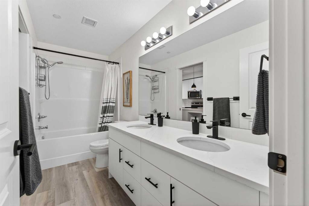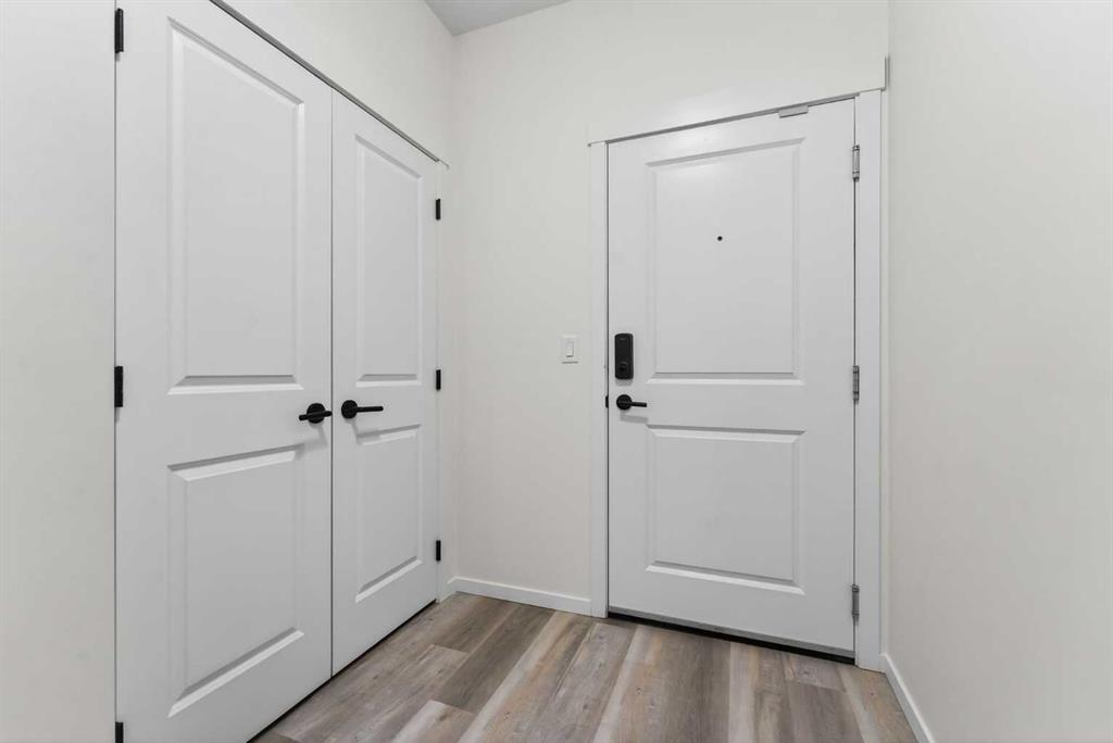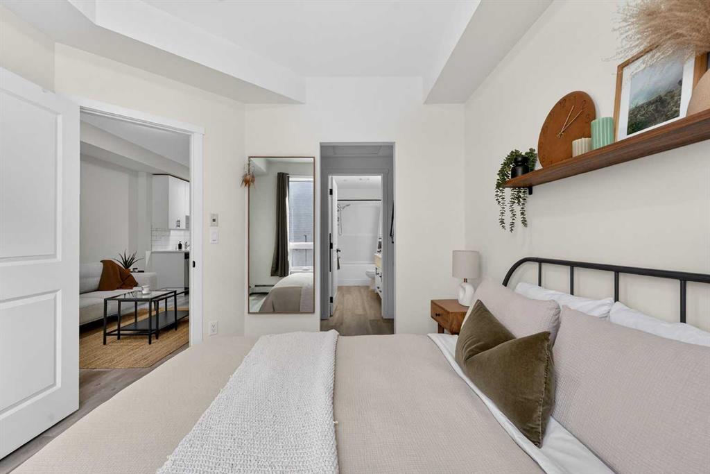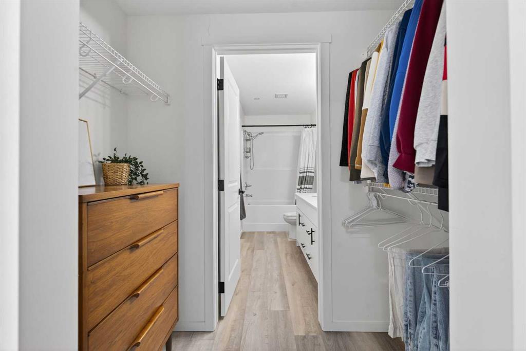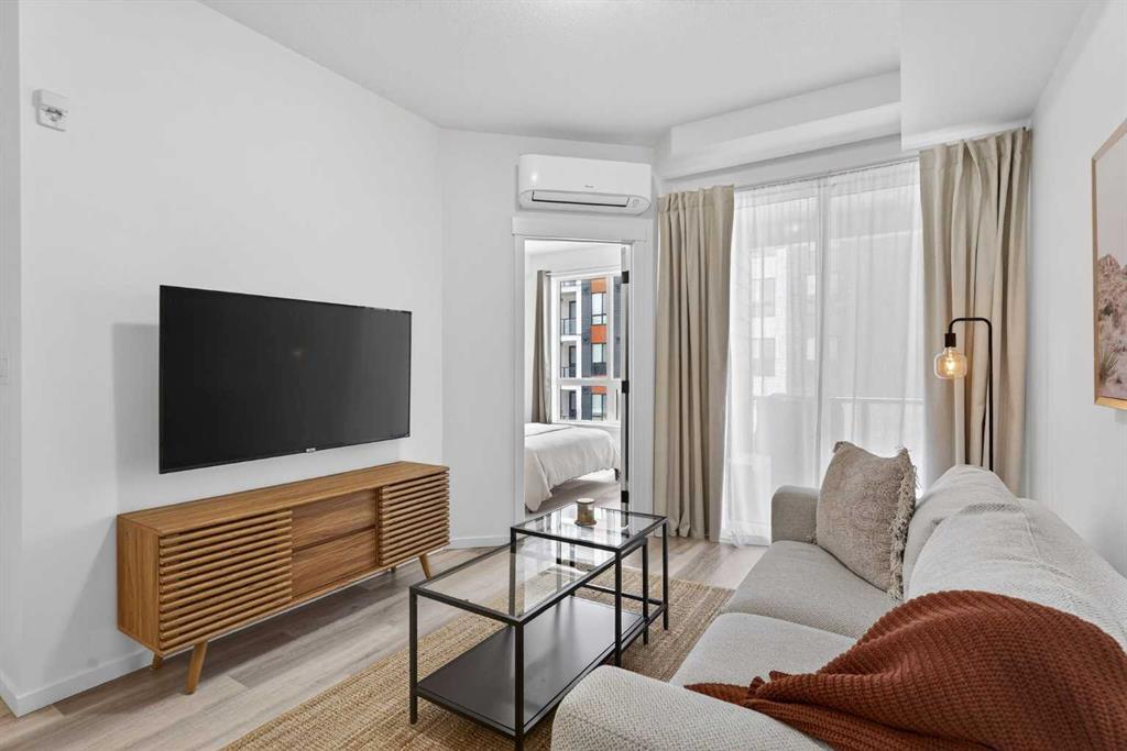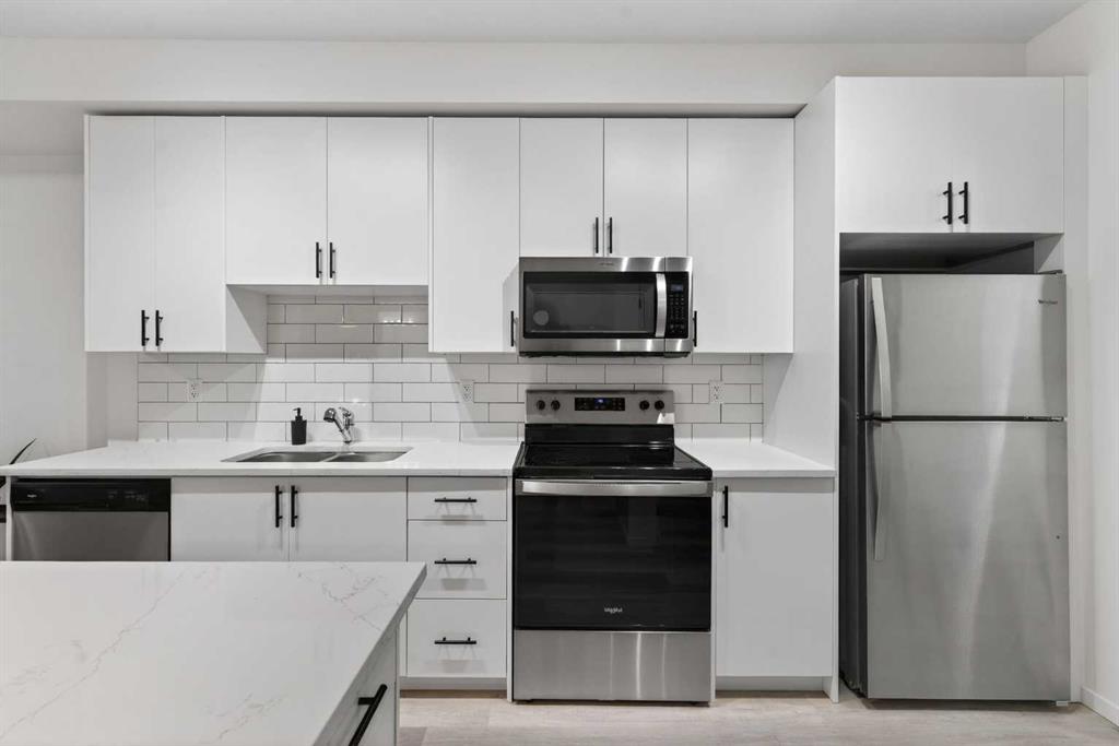 Bright, modern, and move-in ready! This immaculate 2 bedroom, 1 bathroom condo offers a fresh and stylish living space with thoughtful upgrades throughout. Featuring durable vinyl plank flooring (no carpet!), granite countertops, ceiling-height cabinetry, and a large kitchen island with built-in storage and seating for four — perfect for entertaining or casual dining. The spacious layout includes a full 5-piece bathroom with dual sinks and extra vanity storage, a walk-in closet off the primary, a large front entry closet, and a full-size stacked washer and dryer for added convenience. Stay comfortable year-round with an AC unit, and enjoy sunny afternoons & evenings on the west-facing balcony, complete with a BBQ gas line. This unit comes with a Titled parking stall and a separate storage unit, adding exceptional value and convenience. Located in the dynamic, family-friendly community of Sage Hill, you’re just minutes from abundant shopping, restaurants, scenic walking and biking paths, and have quick access to Stoney Trail and major roadways. A beautiful, low-maintenance home in pristine condition — just move in and enjoy!