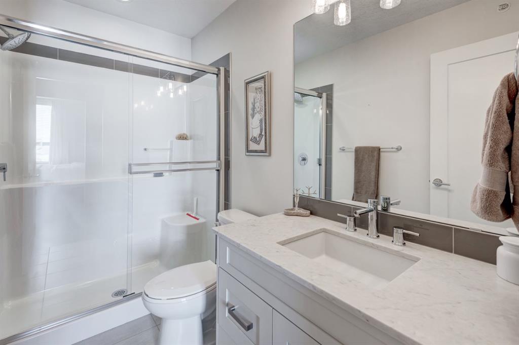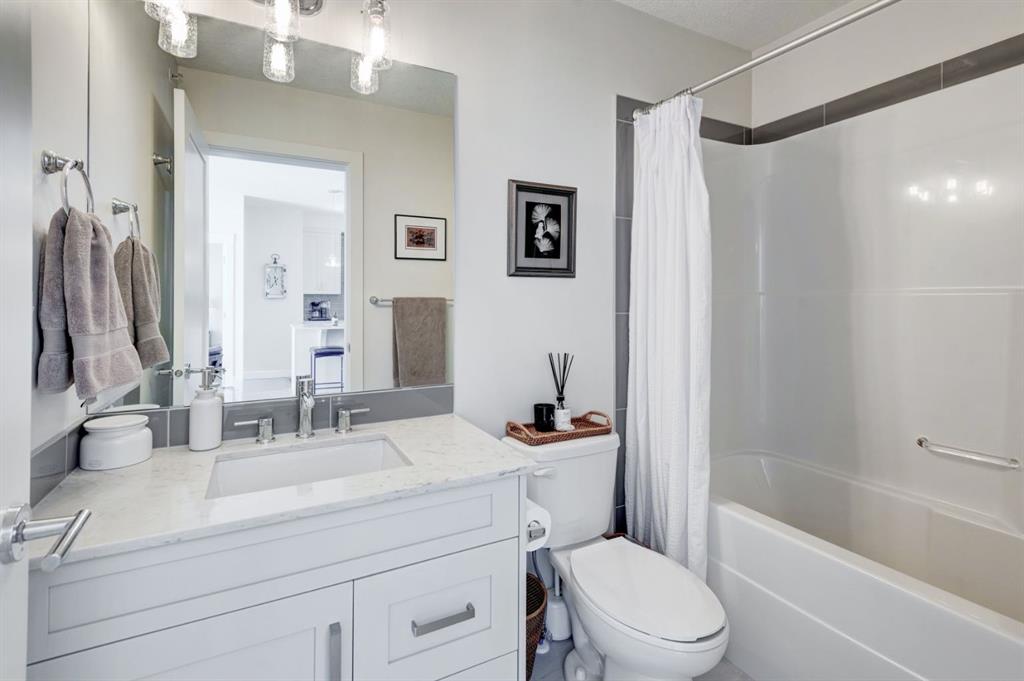 Located in the vibrant, walkable community of Walden, this beautiful top-floor 2-bedroom 763 sq.ft. apartment offers an exceptional combination of privacy, natural light, and stunning views! Enjoy unobstructed views of the park, pond, and pathways, which create a peaceful backdrop that can be appreciated from the comfort of home. As a top-floor residence with a concrete subfloor and only one shared wall, this home provides a remarkably quiet living experience rarely found in apartment living. Inside, the bright and open layout is filled with natural light from large windows throughout the living area and both bedrooms. The living area features a large sliding window with transom, perfectly framing the views while allowing sunlight to pour in throughout the day, and opens onto a spacious balcony ideal for relaxing or entertaining while enjoying the scenery. Rich, warm luxury vinyl plank flooring is complemented by painted shaker cabinetry, upgraded lighting, and approximately $15,000 in thoughtful upgrades that elevate both style and function. The kitchen is designed with everyday convenience in mind, featuring quartz countertops, a large island, built-in microwave, under-mount sink, a corner pantry, and a large French-door refrigerator. This well-designed home offers two bedrooms, including a bright primary retreat with upgraded closet organizers and a walkthrough closet leading to a private 3-piece ensuite with a wide shower. A full 4-piece main bathroom serves the second bedroom and guests. Additional convenience includes a titled underground parking stall, providing secure parking and easy year-round access. Residents enjoy a highly walkable neighbourhood with a variety of shopping and dining options just steps away, while Fish Creek Provincial Park, the Bow River, and nearby golf are just a short distance for your outdoor recreational needs. With quick access to Macleod Trail and Stoney Trail, commuting around the city is simple and efficient. This is a rare opportunity to enjoy top-floor living with stunning views, exceptional privacy, a welcoming balcony, and stylish, move-in ready finishes in this bright, quiet home.
