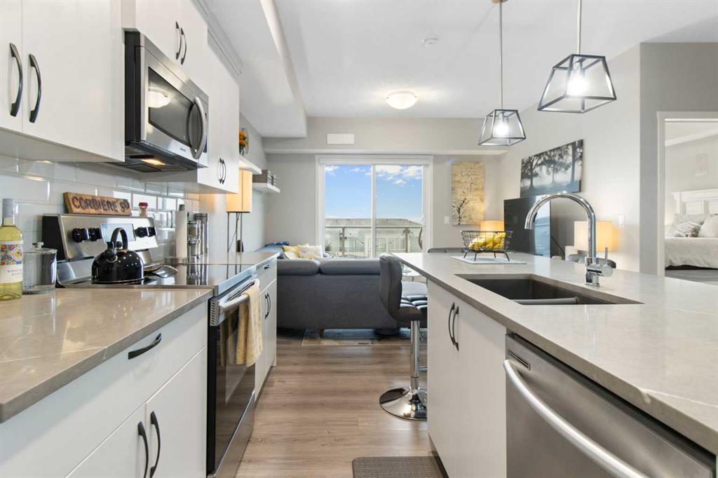 Experience the best of Seton living in this stylish 2-bedroom, 1-bathroom home designed for comfort and convenience. A contemporary open-concept layout welcomes you inside, where natural light pours through oversized windows and highlights the clean lines of plank-style flooring. The kitchen anchors the space with quartz counters, an oversized island that doubles as a gathering hub, stainless steel appliances, full-height cabinetry and a timeless subway-tile backsplash. Soft-close drawers, abundant storage and a deep under-mount sink ensure both elegance and everyday function. The living and dining areas connect seamlessly to a private balcony with gas line, an ideal extension for morning coffee, fresh air breaks or evening barbecues. Two well-sized bedrooms offer versatility, whether as restful retreats, a home office or guest accommodation. The bathroom is thoughtfully finished with modern fixtures, quartz vanity and a subway-tile tub surround that blends durability with spa-like style. In-suite laundry with a full stacking washer and dryer adds practical ease, while a titled underground parking stall and storage locker provide security and seasonal space. Residents benefit from energy-conscious design features such as low-emissivity windows and LED lighting, paired with controlled-access entry and professionally maintained common areas. A/C is roughed-in, giving you the ability to add cooling comfort in the future. Location is a highlight with Seton Market’s shops and dining options within walking distance, the South Health Campus close at hand and the world-class Brookfield YMCA nearby offering fitness, swimming and community programs. Outdoor enthusiasts can enjoy pathways, parks and green spaces woven throughout the community, while quick access to transit routes streamlines commutes to downtown and beyond. This home combines urban convenience with modern finishes, offering a balanced lifestyle in one of Calgary’s most dynamic neighbourhoods.
