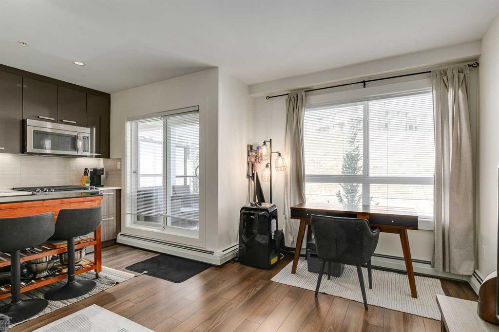 Nestled in the heart of Bridgeland — this stylish top floor one-bedroom offers the perfect blend of modern design and urban convenience. Inside, the unit is in immaculate “like new” condition. The kitchen boasts a sleek galley-style layout equipped with high-end appliances (gas range!), Quartz countertops, and laminate flooring. The open-concept design seamlessly connects the dining and living areas, creating a very functional layout. The bedroom is large with full closet and TV mount already installed. Step out onto your balcony to take in the views of the green space.. The unit has full size washer and dryer. Residents enjoy a host of amenities, including secure underground titled parking, a private storage locker, bicycle storage, access to a beautifully landscaped courtyard, and a fully equipped fitness centre. Schedule your private viewing today.